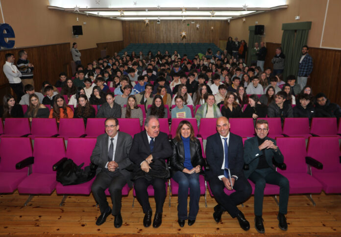 La consejera de Educación, Rocío Lucas, inaugura la XV Jornada de Orientación Universitaria del Colegio La Salle; acompañada del director de centro, Juan Antonio Rojo; del secretario Autonómico de Escuelas Católicas, Leandro Roldán, y del director provincial de Educación, Sabino Herrero, entre otros