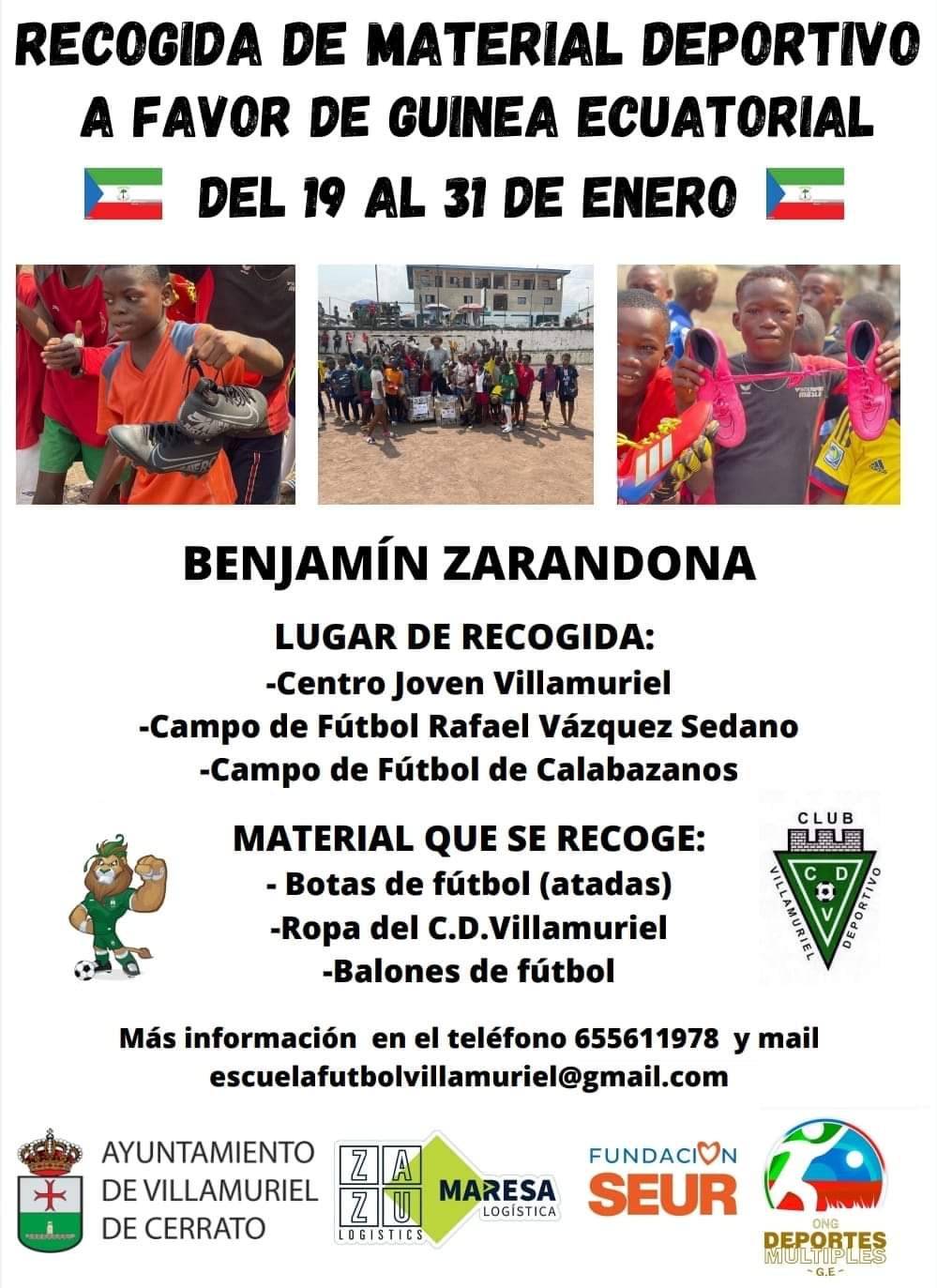 La Escuela de Fútbol y el CD Villamuriel, colaboran con Benjamín Zarandona (ex jugador del Real Valladolid, Real Betis,CF Palencia…) en una recogida de material deportivo a favor de los niños de Guinea Ecuatorial.