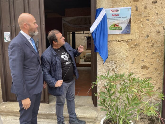 Castilla y León Televisión descubrió en Saldaña (Palencia) la placa de ‘El pueblo más bello de Castilla y León’ 2021 en su modalidad (entre mil y 10 mil habitantes). El municipio palentino ha elegido la fachada de la Oficina de Turismo de la plaza de San Pedro para colocar el distintivo.