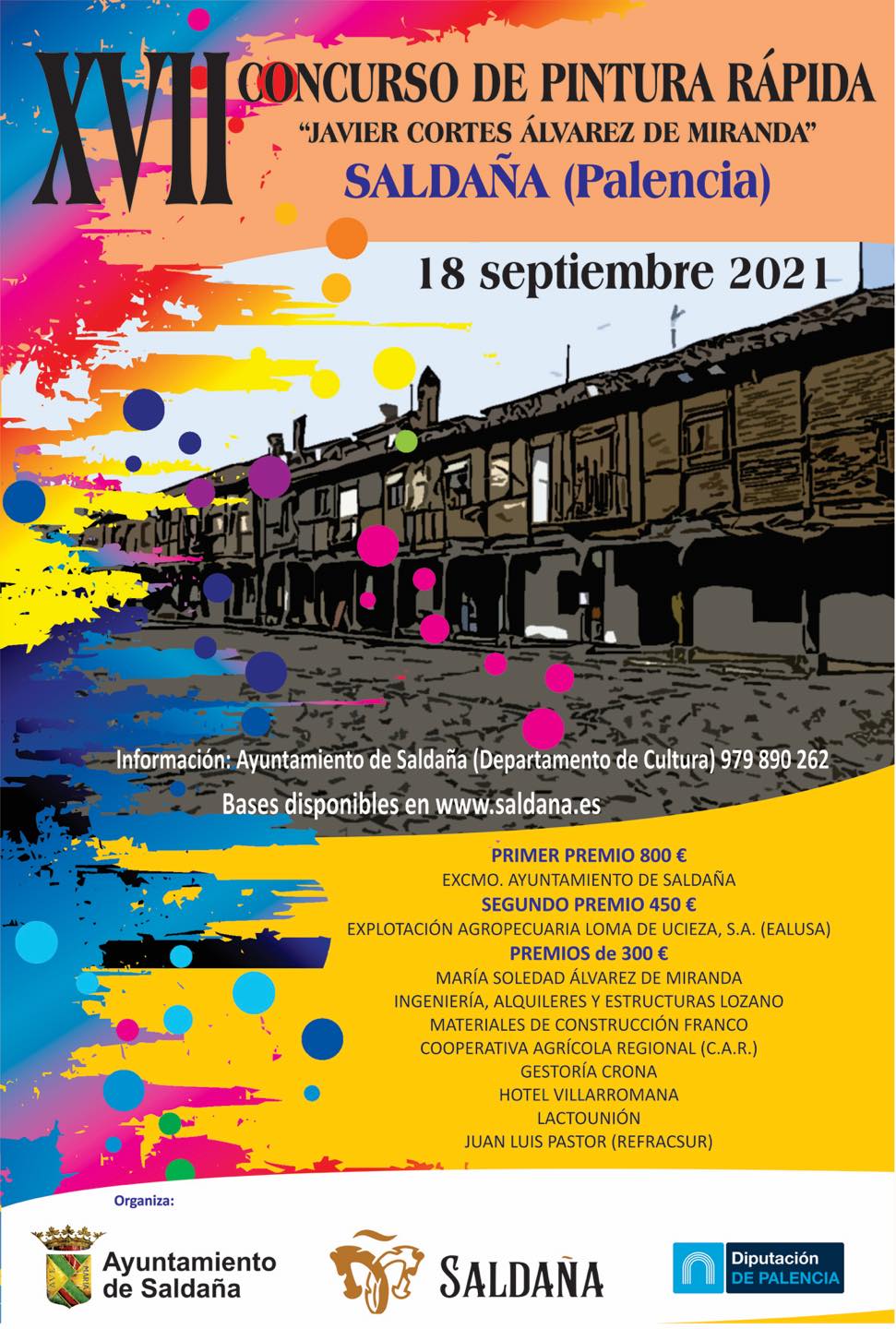 Tras el parón obligado del pasado año 2020 y la imposibilidad de retomarlo en su fecha habitual del mes de junio en este año 2021, todo ello debido a la situación sanitaria y las consabidas restricciones impuestas por las autoridades, la Concejalía de Cultura del Ayuntamiento de Saldaña convoca el XVII Concurso de Pintura Rápida Javier Cortes Álvarez de Miranda, que se celebrará en Saldaña el próximo sábado día 18 de septiembre.