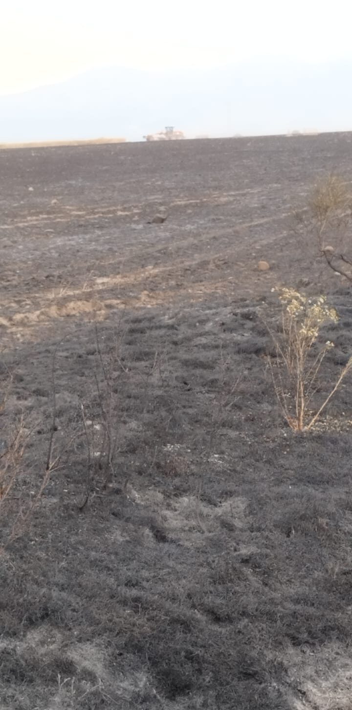 El fuego, provocado por una cosechadora, se dio en el término de Santibáñez, lindando con Mantinos