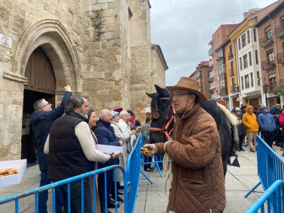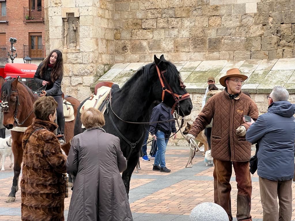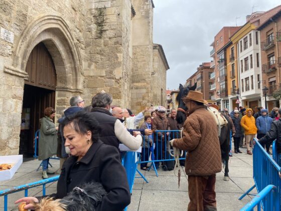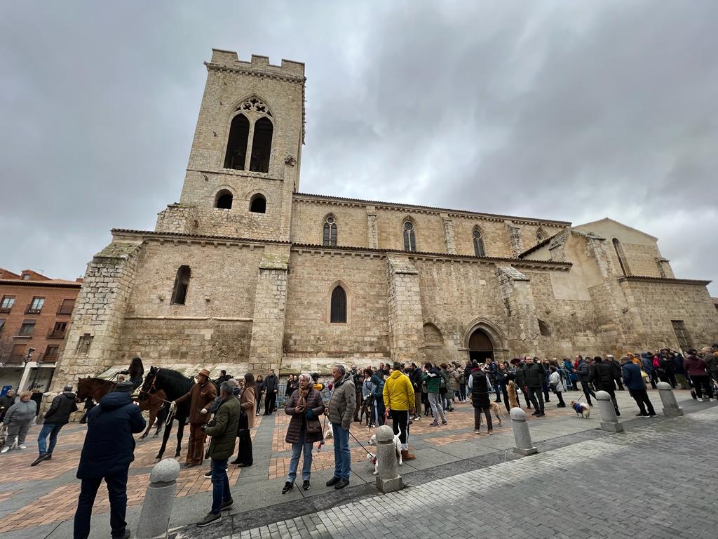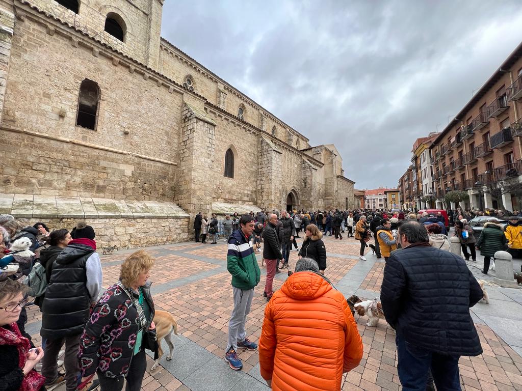 Fieles a la tradición, como cada 17 de enero, los palentinos han acudido a las puertas de la Iglesia de San Miguel con sus mascotas para que recibieran la bendición por la festividad de San Antón.