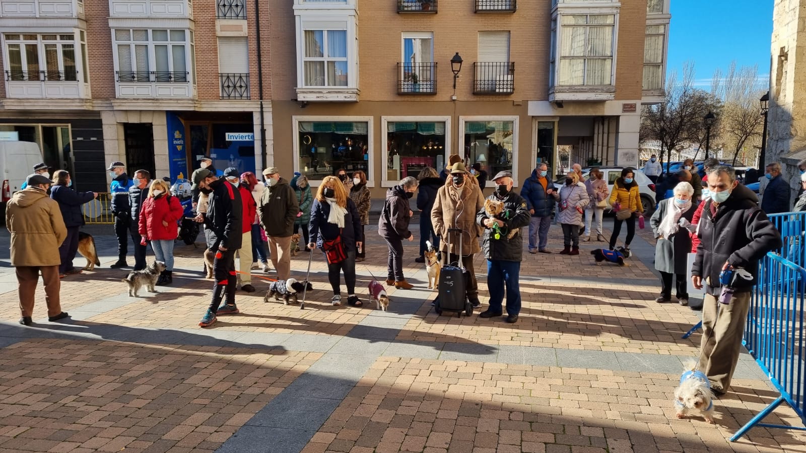 La iglesia de San Miguel se ha vuelto, por lo tanto, a convertir en el punto de encuentro de un buen número de animales, en su mayoría perros, para recibir la bendición. Ha sido a partir de las 12 horas cuando comenzaron a llegar los primeros animales junto a sus dueños a las inmediaciones de la iglesia y a las 12,30 el momento en el que uno a uno fue recibiendo el agua bendita. Y es que son un buen número de palentinos los que quieren que sus animales estén protegidos por San Antón.