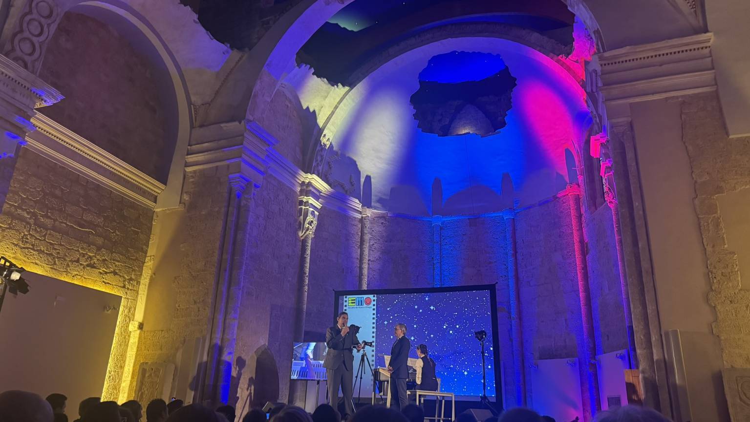 Estrellas, meteoritos y satélites. Tres astronautas visionarios y un tanto alocados. Un par de astrónomos que de aficionados solo tienen el nombre. Agujeros de gusano que nos llevan hacia atrás y hacia adelante en el tiempo. Un científico de alto nivel… Y emociones, muchas emociones. Todo un universo condensado en una velada: la que tuvo lugar este sábado en San Pedro Cultural en Becerril de Campos para conmemorar el décimo aniversario de este espacio, que ya se ha convertido en lanzadera del turismo y la cultura de la provincia.