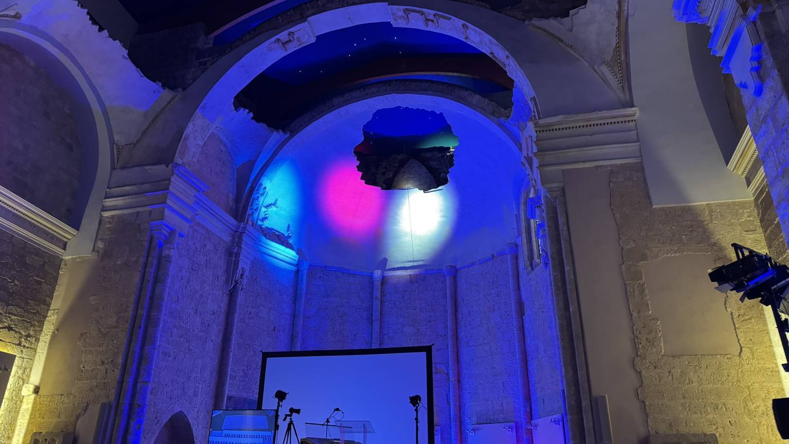 La bóveda derruida, tan solo sugerida por algunos arcos en pie, hacía dirigir la mirada hacia la inmensidad del universo. Así que el proyecto arquitectónico, tal como lo describen sus autores, se convirtió en un juego de ilusionismo. “Le pusimos un techo y, después, lo hicimos desaparecer”, explicaba Juan.