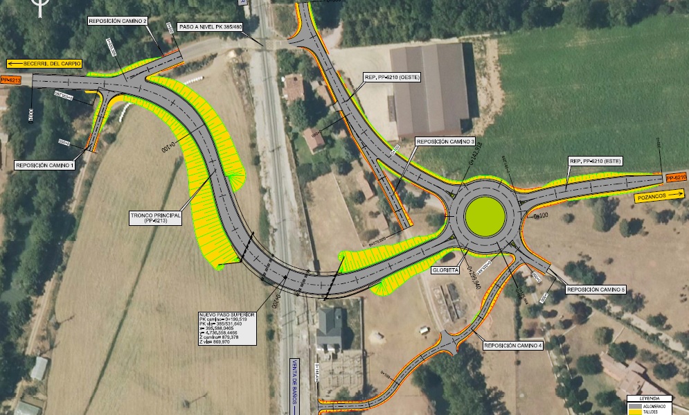 Por ello se proyecta además una nueva intersección, mediante glorieta, con la carretera PP-6210 (de Mave a Pozancos) y con los caminos adyacentes.