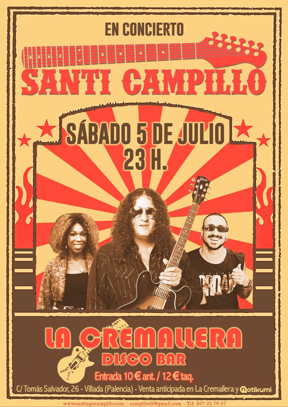 El músico y guitarrista Santi Campillo actuará el próximo sábado 5 de julio en La Cremallera (calle Tomás Salvador, 26, Villada), en un concierto que comenzará a las 23:00 horas. Reconocido por su energía en directo y su estilo que nace del blues y del rock, y un filtro basado en la improvisación más salvaje e indómita, siendo capaz de expresar con su guitarra casi hablando a través de fraseos y riffs, hasta los sentimientos más profundos.