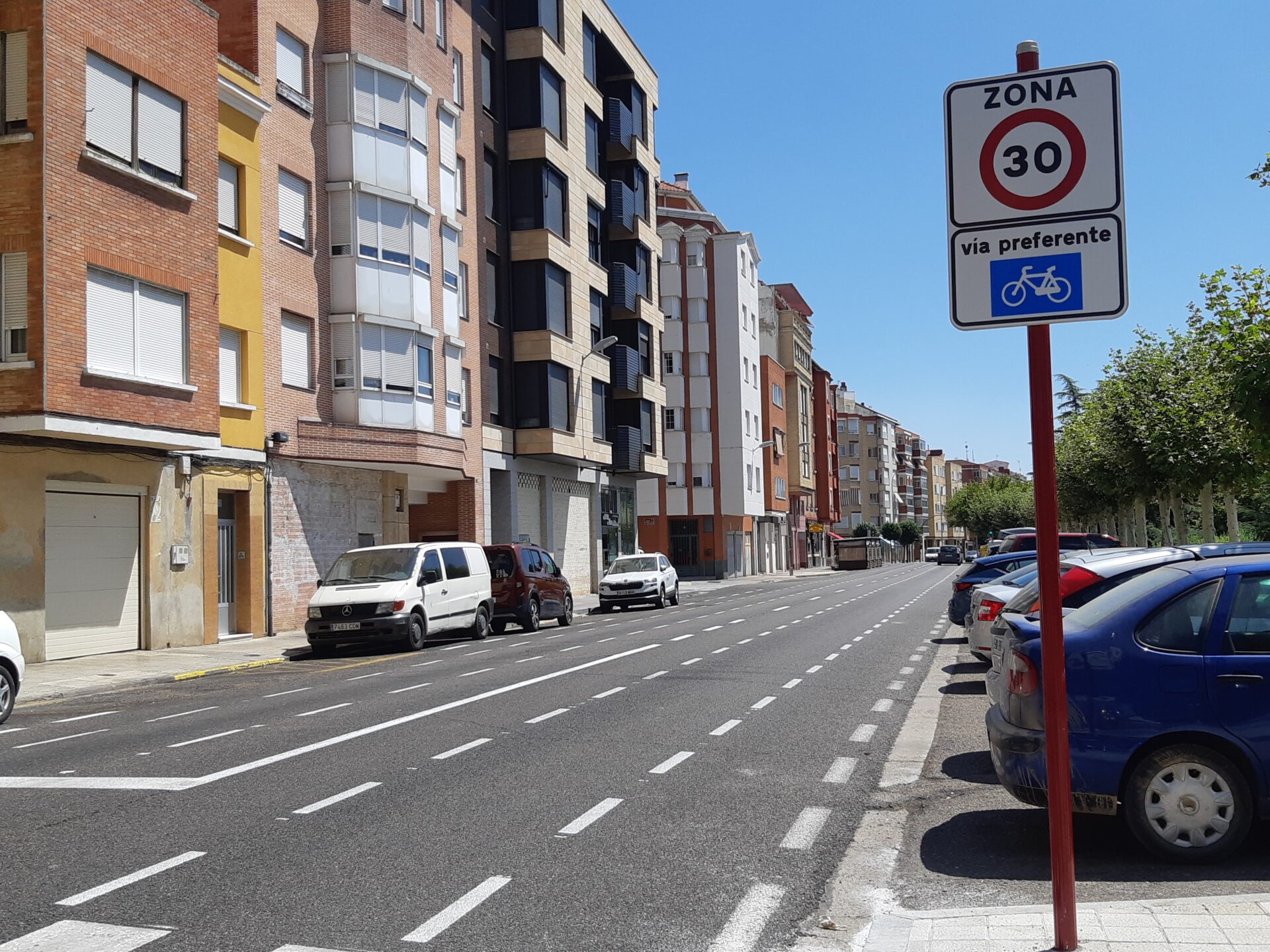 Por ejemplo, en la calle San Antonio, en el cruce con Diagonal y Juan Antonio Bardem, donde ya se puede ver una señal recién instalada en la que se anuncia a los conductores que se encuentran en una zona en la que tienen preferencia los ciclistas y donde, como en el resto de vías de un carril para cada sentido, la velocidad está limitada a 30 km/h.
