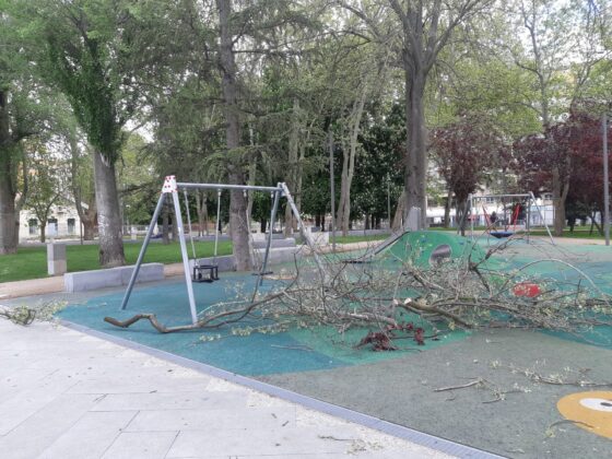 Cinco han sido los ejemplares seleccionados en este parque. “Todos ellos chopos, con muchos años. Árboles que, siguiendo el criterio técnico, suponen un peligro”, explica el concejal de Medio Ambiente, Toño Casas. “Aunque parezca que tienen brotes, estos salen del tronco principal y son muy débiles. La parte alta está seca”.