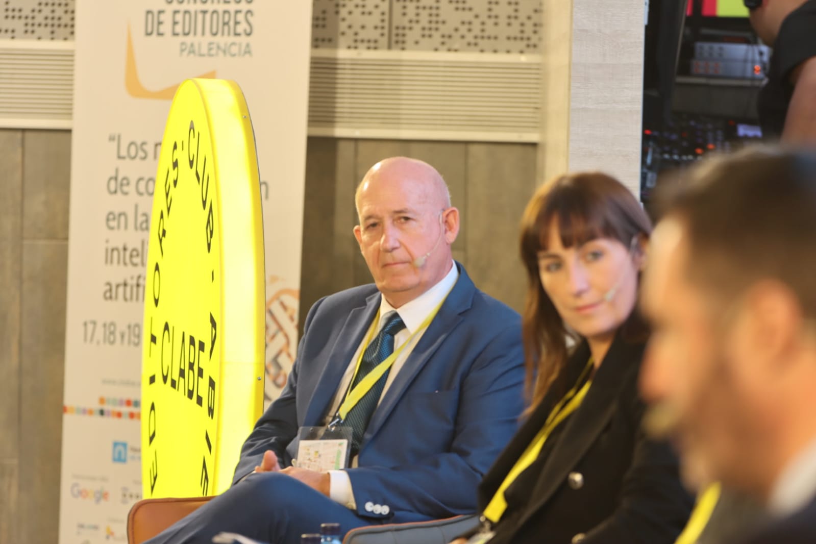 Periodismo de proximidad: el valor de lo cercano era el título de la cuarta y última charla de este primer día de Congreso de CLABE en Palencia con una mesa conformada por Juan A. Martín Mesonero, presidente CEO Grupo Tribuna; Virginia Agar. Head of Communications & Digital Marketing. Grupo Publicaciones del Sur; Adrián Beloki. Director de Contenidos. Grupo Peldaño y el propio Lozano, moderada por Raquel Arconada, presidenta de la Asociación de la Prensa de Palencia.