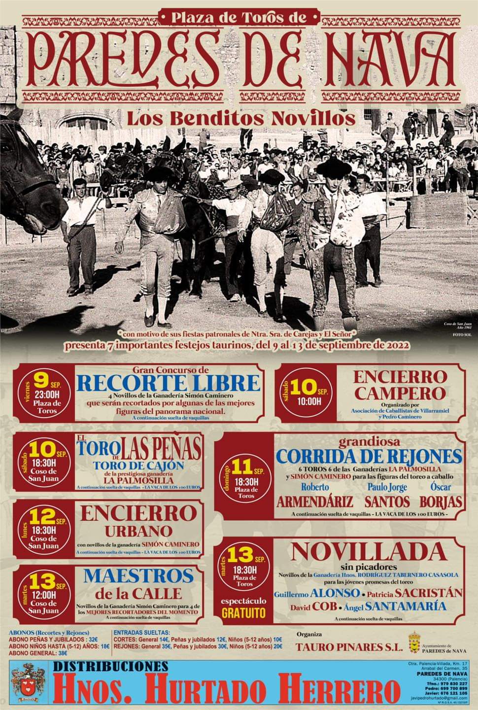 Siete citas taurinas se celebrarán en Paredes de Nava del 9 al 13 de septiembre con motivo de las fiestas en honor a Nuestra Señora de Carejas y los Benditos Novillos.