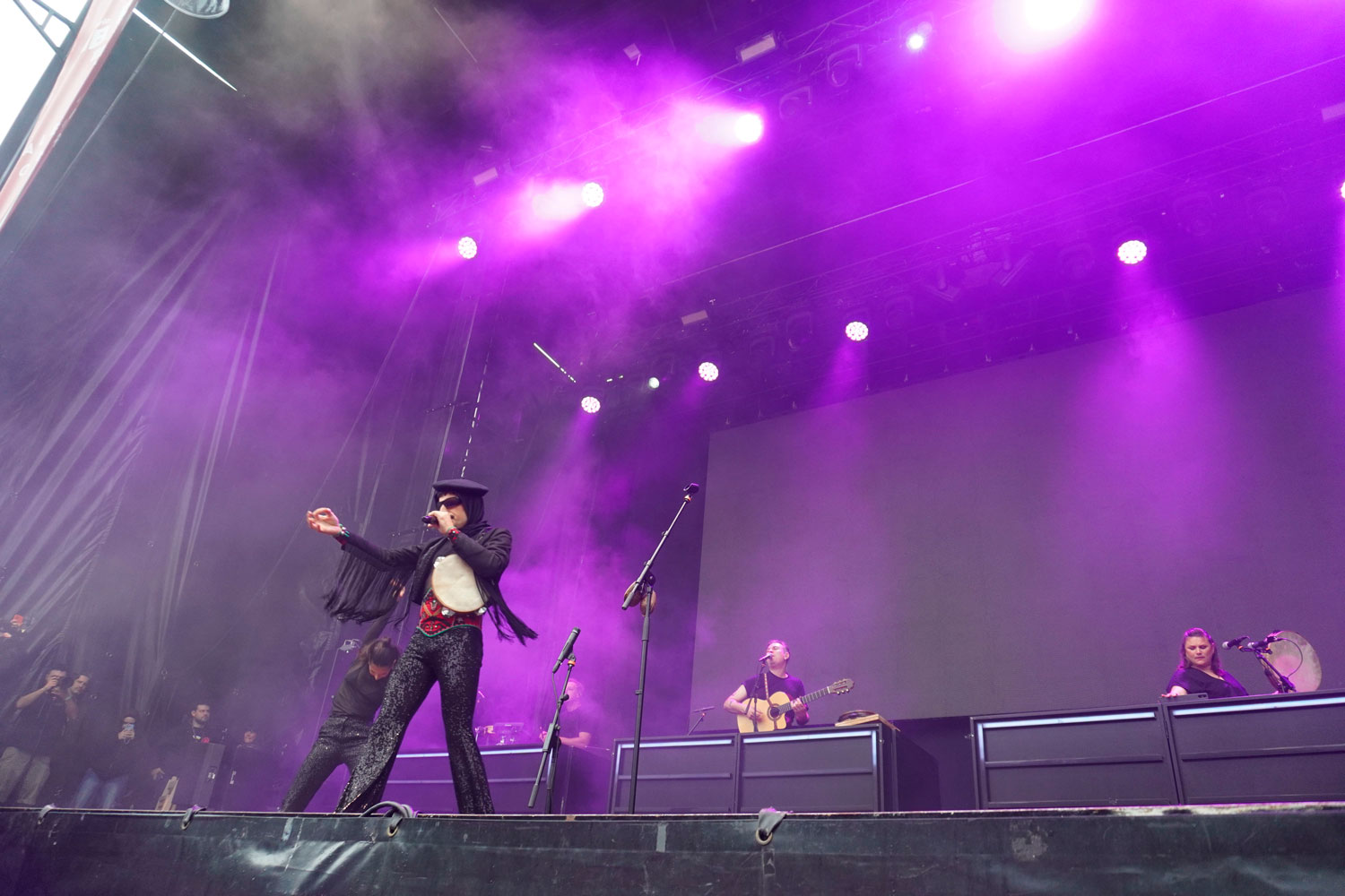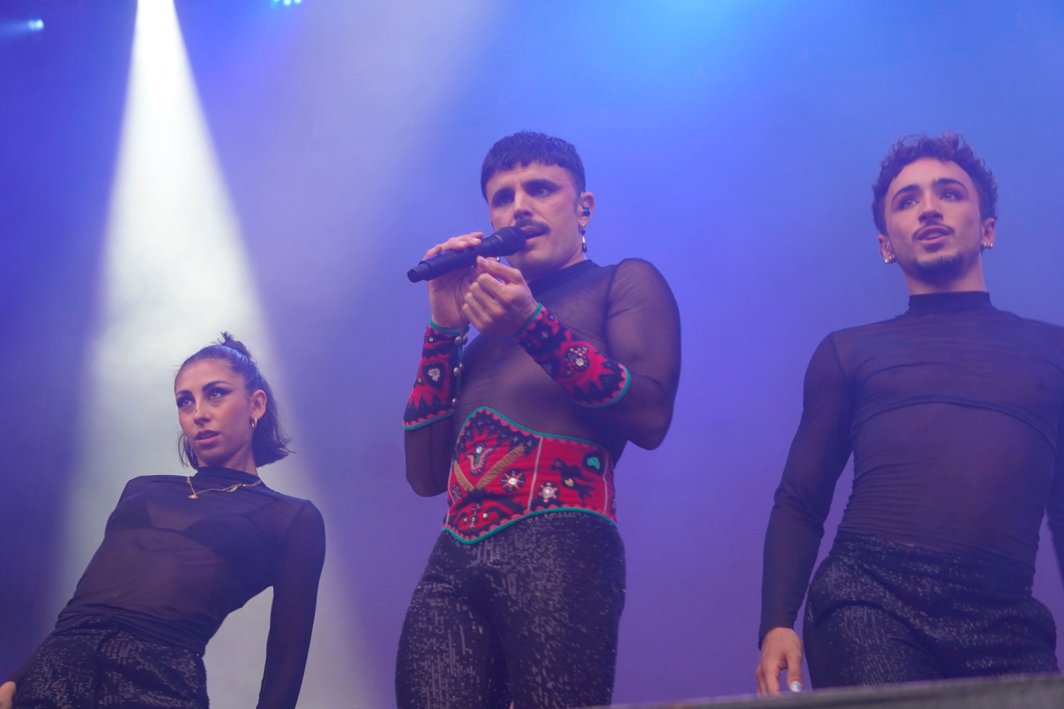 Un público devoto que profesaba toda su fe hacia el asturiano con símbolos auténticamente litúrgicos: carteles y banderas, referencias a sus canciones o pañoletas al cuello o cubriendo la cabeza, incluso un grupo de aldeanas palentinas con su banda dorada y todo, perfectamente combinada con su camisa festivalera. Y es que Rodrigo Cuevas no solo ha abierto camino, sino que consolida, esa comunión perfecta entre raíz y vanguardia, entre tradición, principios y transgresión. Y siempre con humor.