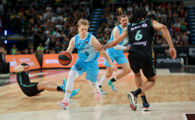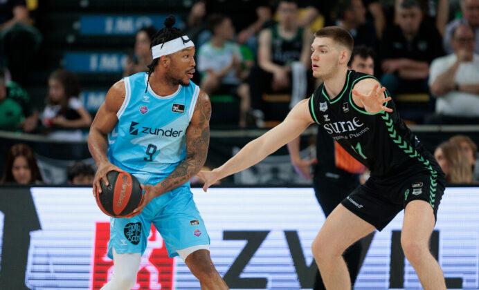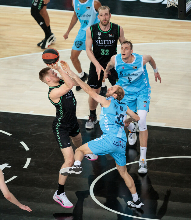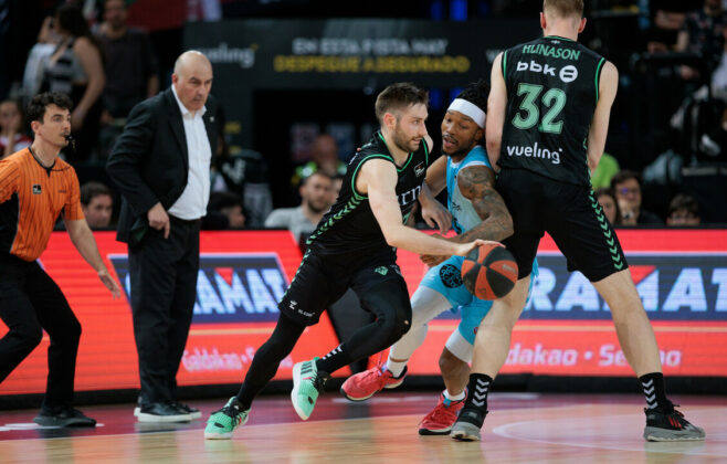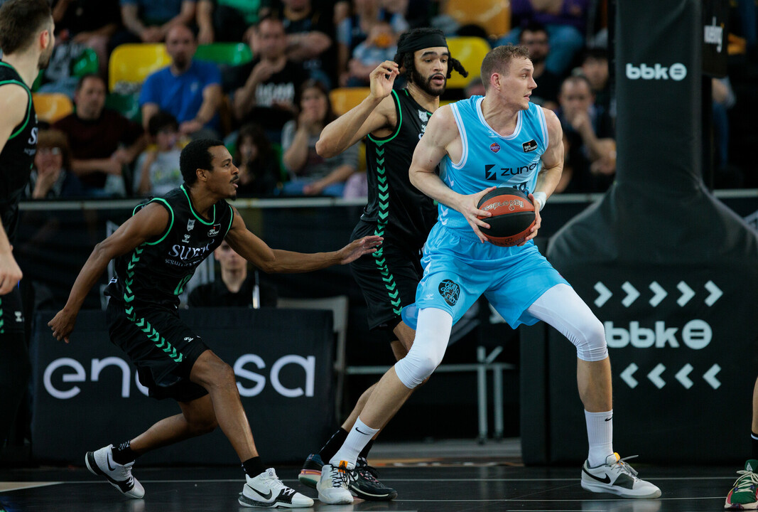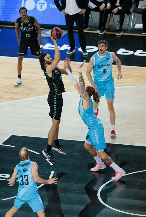 Introdujo a Frankamp a los mandos y a Hands como su escota, buscando de nuevo a Pasecniks por dentro. Y la ventaja volvió a crecer a 12 puntos en menos de dos minutos con el dominio del rebote tanto defensivo como ofensivo y el acierto desde el tiro de tres que cotizaba entonces en un 63% para los del Zunder. El Bilbao Basket llegó al descanso con apenas un 10%. 1 de 10 desde los 6,75.