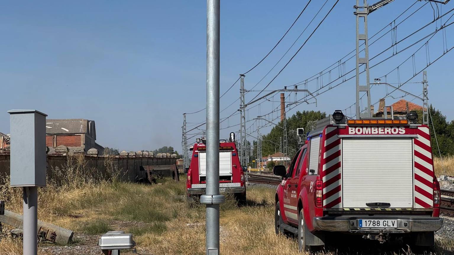 Efectivos de los Bomberos de la Diputación de Palencia, con el apoyo de la Guardia Civil y personal técnico de Adif, sofocaron este viernes un incendio en las antiguas instalaciones de la azucarera de Monzón de Campos, a pocos metros de la vía ferroviaria y del paso a nivel de la carretera que une esta localidad terracampina con la vecina Husillos.