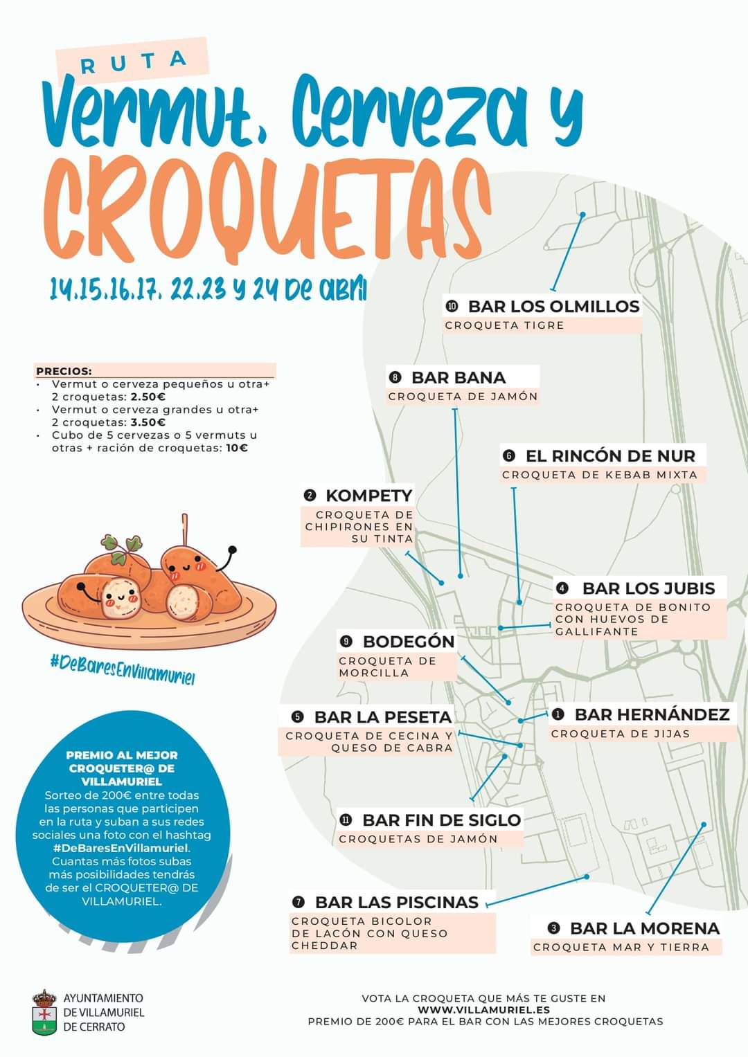 El Ayuntamiento de Villamuriel de Cerrato presenta la primera ruta del vermut, cerveza y croquetas en la que varios establecimientos hosteleros de la localidad participarán ofreciendo a los clientes una consumición de vermú, cerveza u otras bebidas con croquetas.