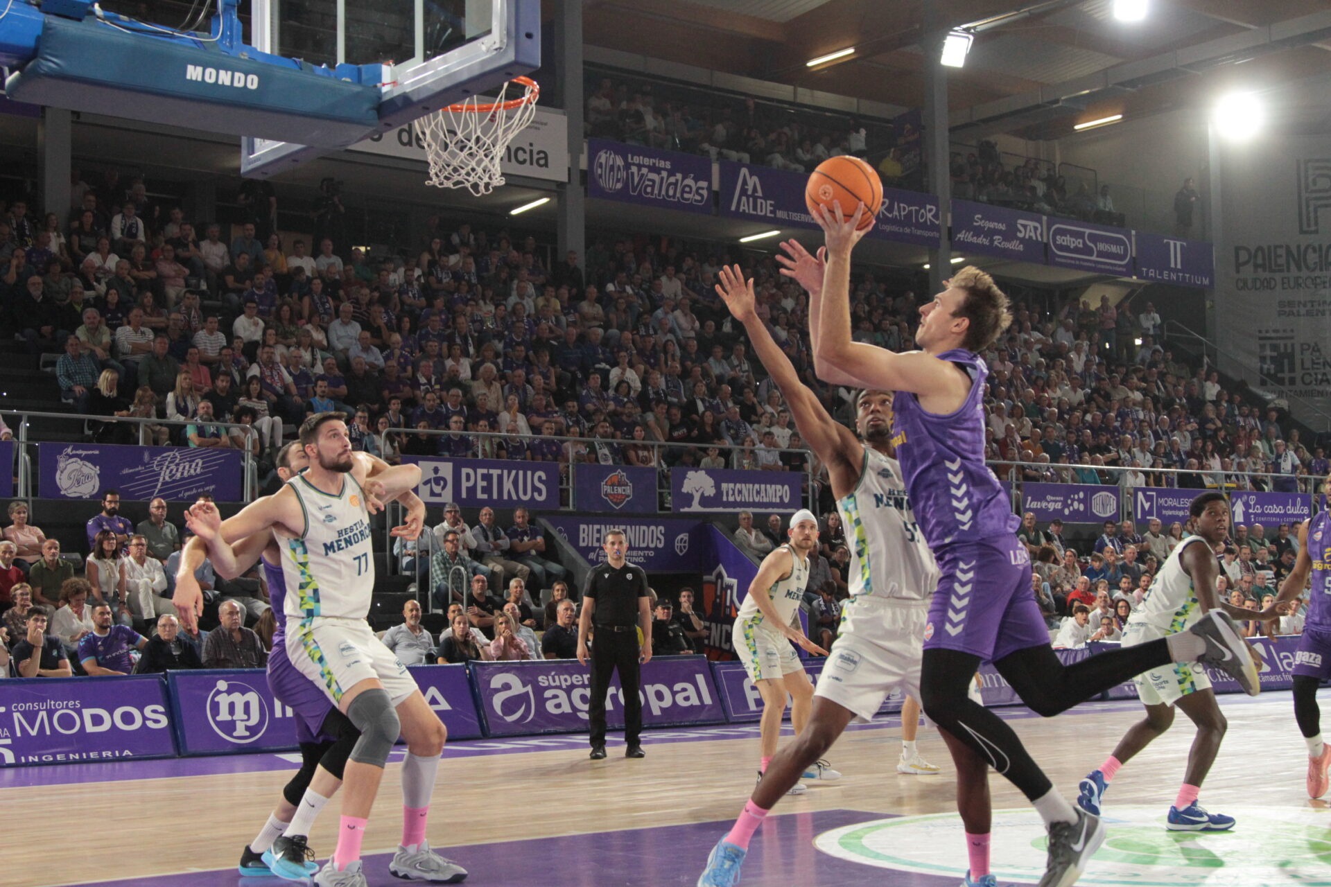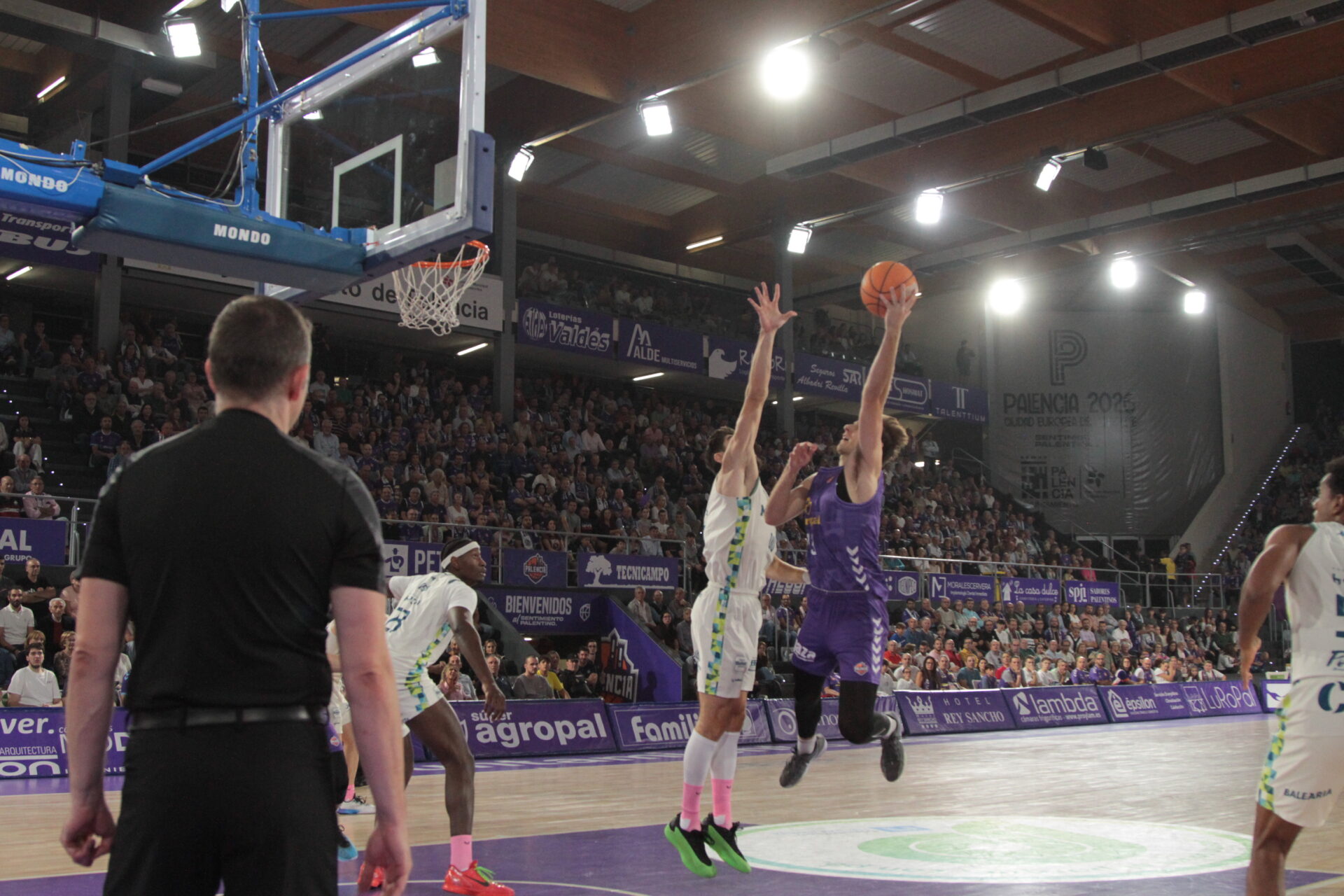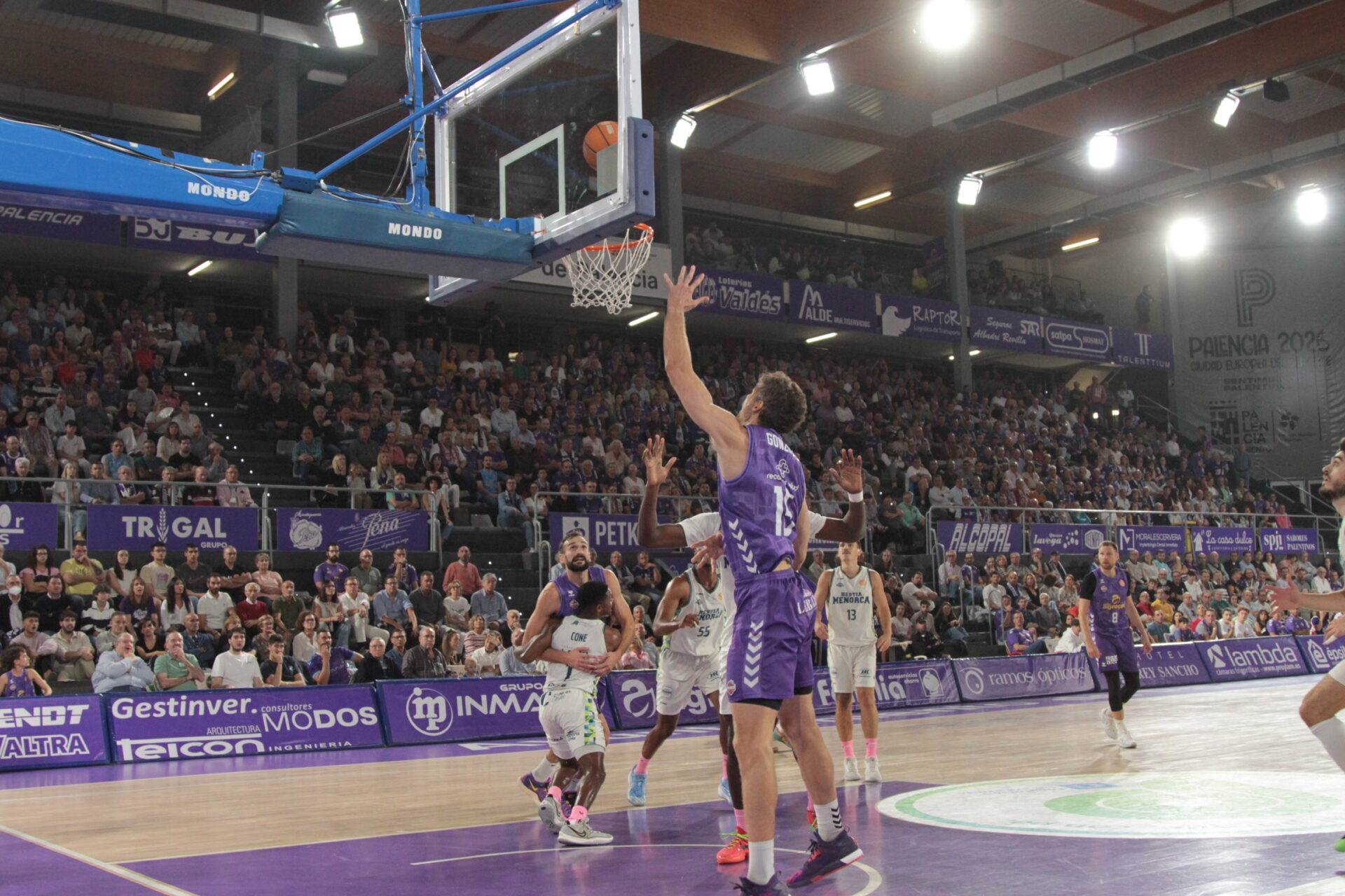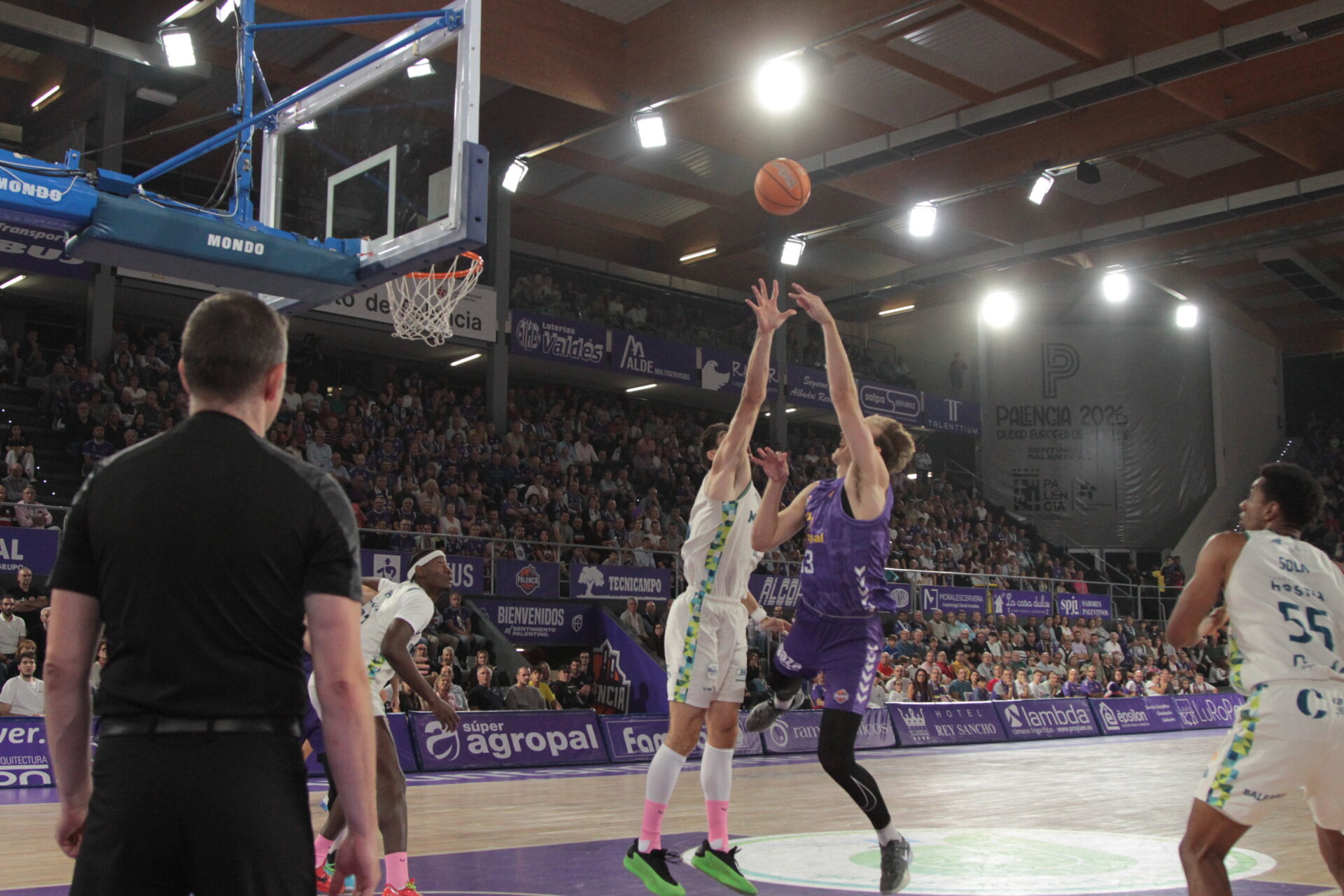 Comenzó también el recital de viento de las gradas locales al mostrar su desacuerdo con dos faltas concedidas al Hestia Menorca que los acercaron en el electrónico. Una mala combinación en el ataque morado propició que los baleares se volvieran a poner por encima, pero Vrankic en una jugada de perseverancia bajo el aro logró sobreponer al Súper Agropal Palencia. En todo caso, el encuentro estaba en un pañuelo y sin desplegar el cuadro local su potencial de juego. Tampoco de tiro, con apneas 13 lanzamientos de campo, y la mitad fueron fallos.