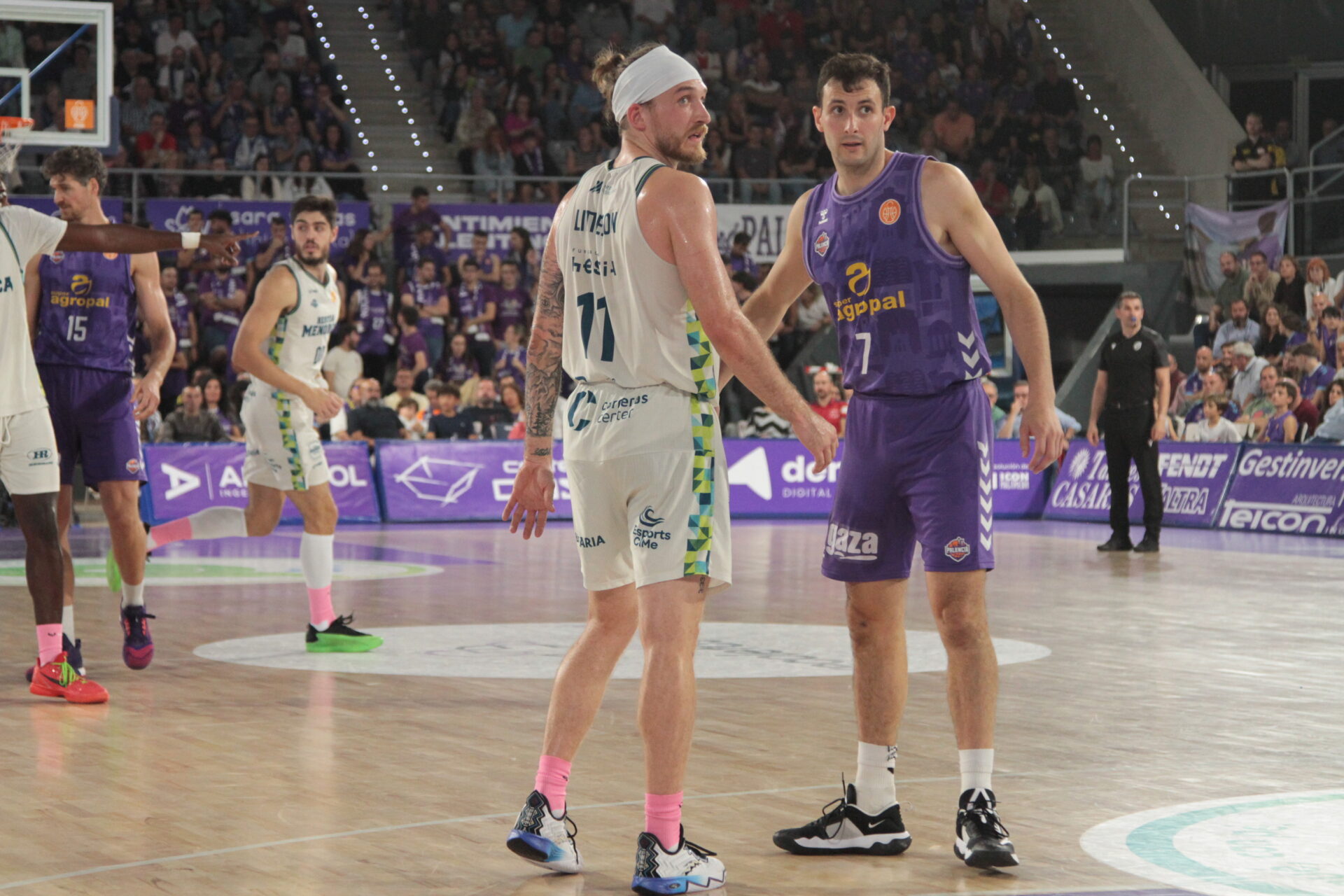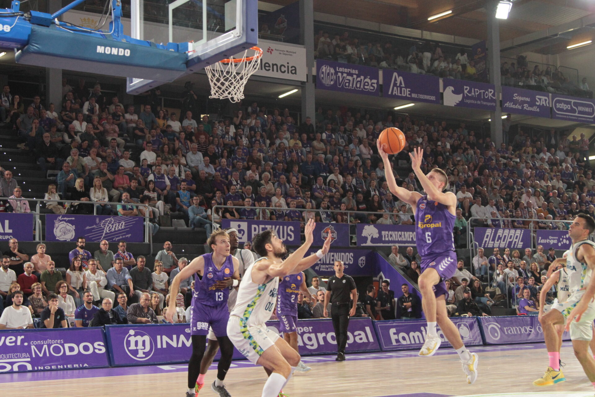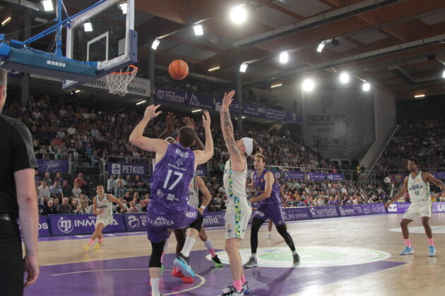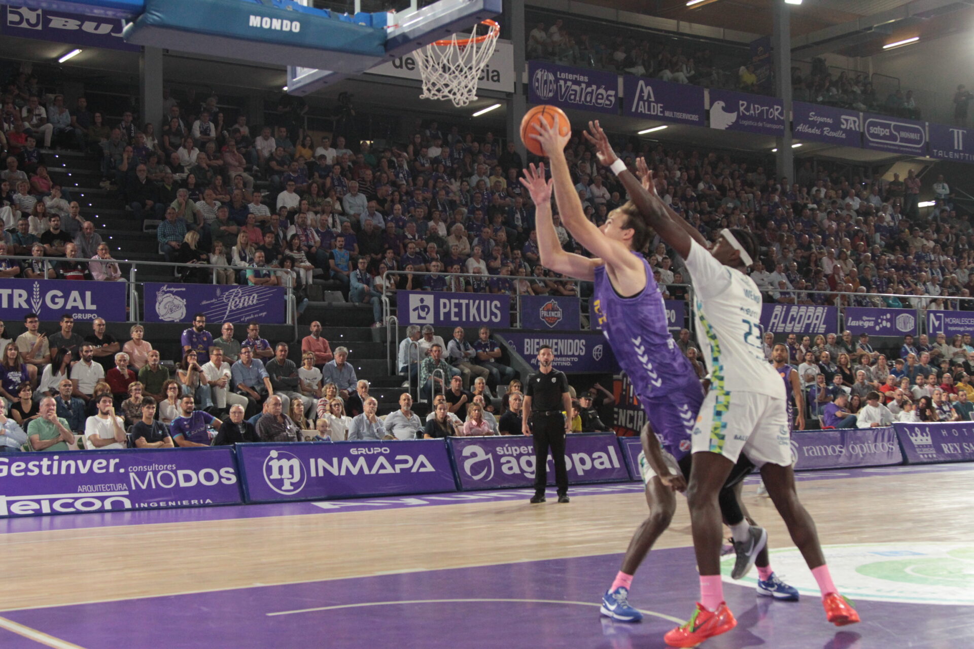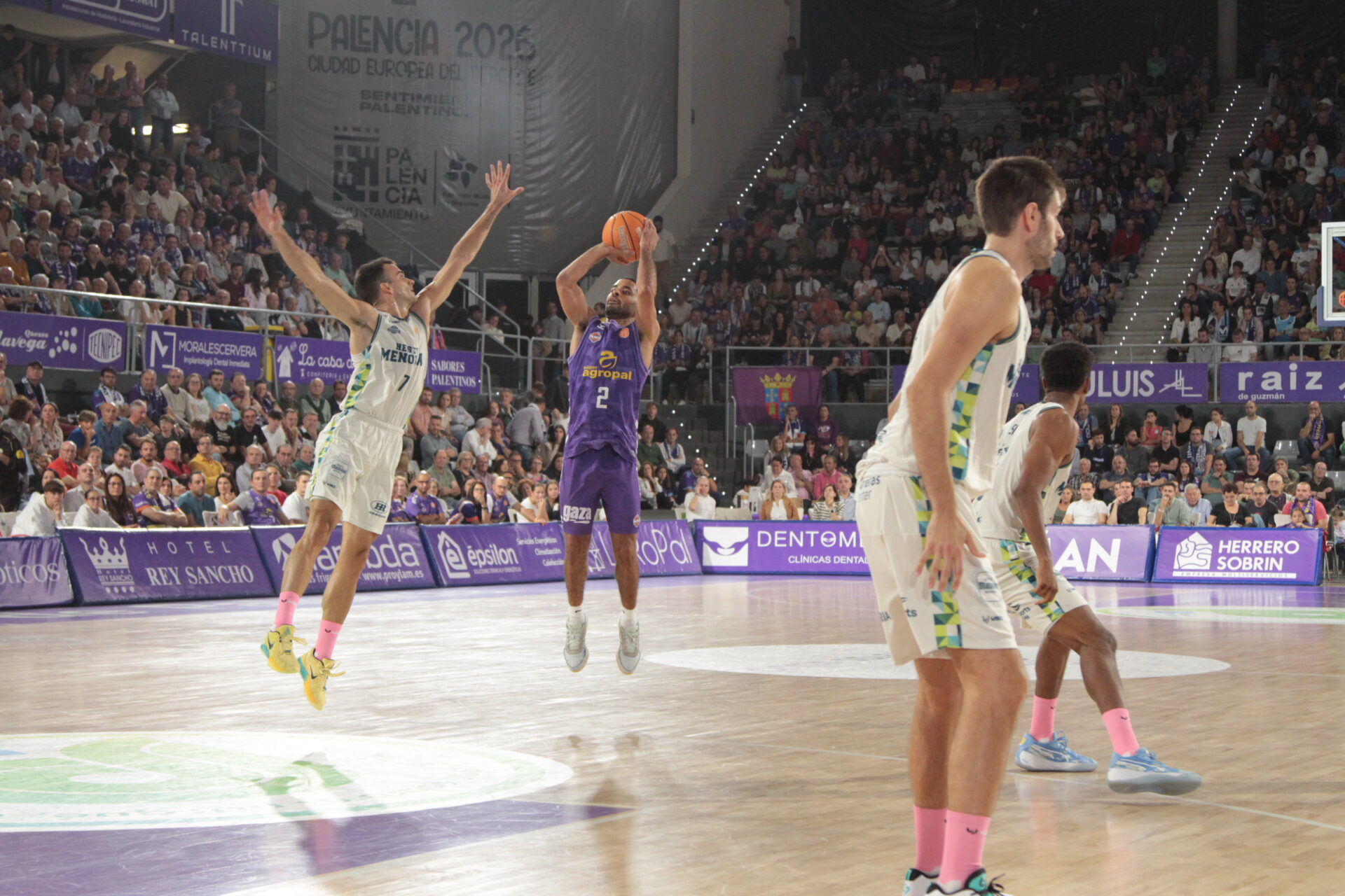 Comenzó también el recital de viento de las gradas locales al mostrar su desacuerdo con dos faltas concedidas al Hestia Menorca que los acercaron en el electrónico. Una mala combinación en el ataque morado propició que los baleares se volvieran a poner por encima, pero Vrankic en una jugada de perseverancia bajo el aro logró sobreponer al Súper Agropal Palencia. En todo caso, el encuentro estaba en un pañuelo y sin desplegar el cuadro local su potencial de juego. Tampoco de tiro, con apneas 13 lanzamientos de campo, y la mitad fueron fallos.