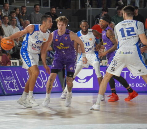 Intercambio de golpes sin un dominador claro aunque con la sensación de que Alicante era era Larsen. Defendiendo a Krutwig, atacando el aro palentino, sacando faltas… En el marcador, eso sí, los palentinos iban minando y minando puntos. 42-35 en el luminoso consumidos casi cuatro minutos.