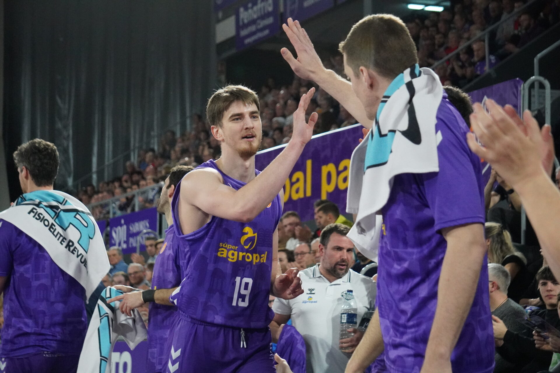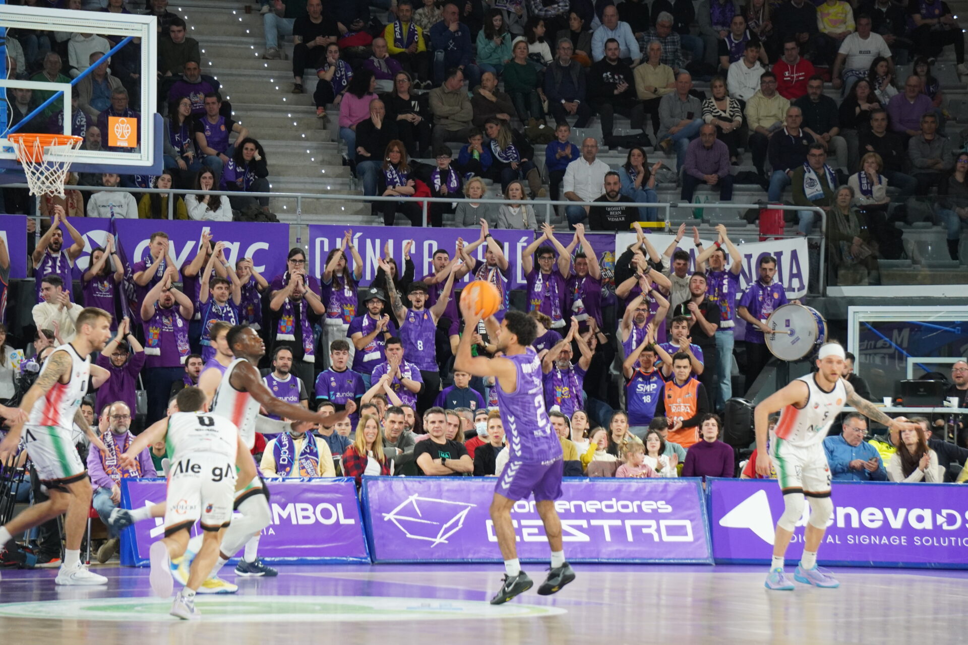 Al final del encuentro 85-77, y decimoctava victoria para los morados que siguen la estela del Betis que también ganó, en la prórroga al Ourense.