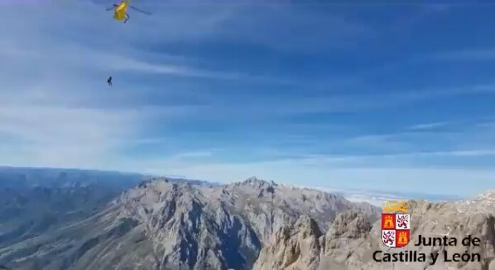 (Video) Rescatados en helicóptero dos montañeros enriscados en la ruta de Collado Jermoso