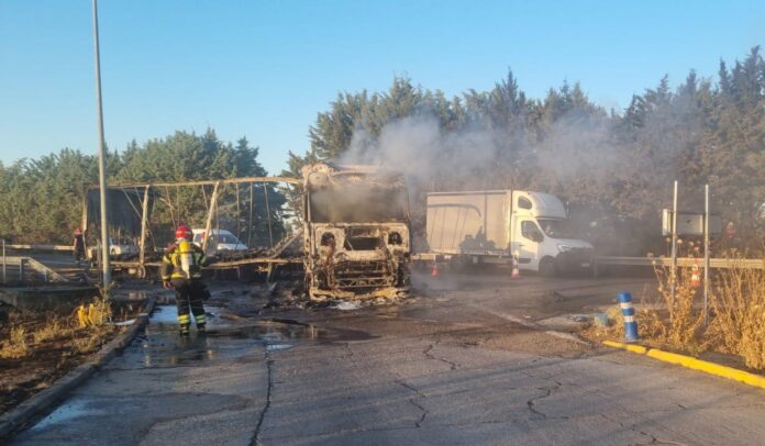 (Video) Reestablecida la circulación en la A-62 en Dueñas tras el incendio de un camión junto a una gasolinera