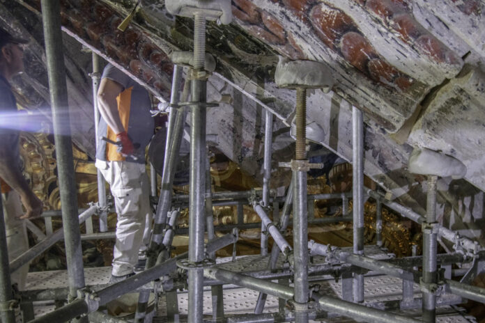 Un desprendimiento obliga a intervenir en la bóveda de Santa María de Becerril