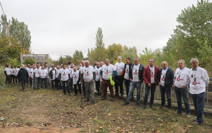 Medio centenar de regantes protestan en Herrera por la paralización de la modernización del Sector G en el Canal del Pisuerga