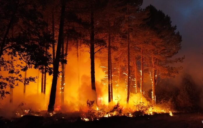Salvan de un nuevo incendio forestal en Palencia una granja de cerdos y una masa forestal de más de 4.000 hectáreas en Santibáñez de la Peña
