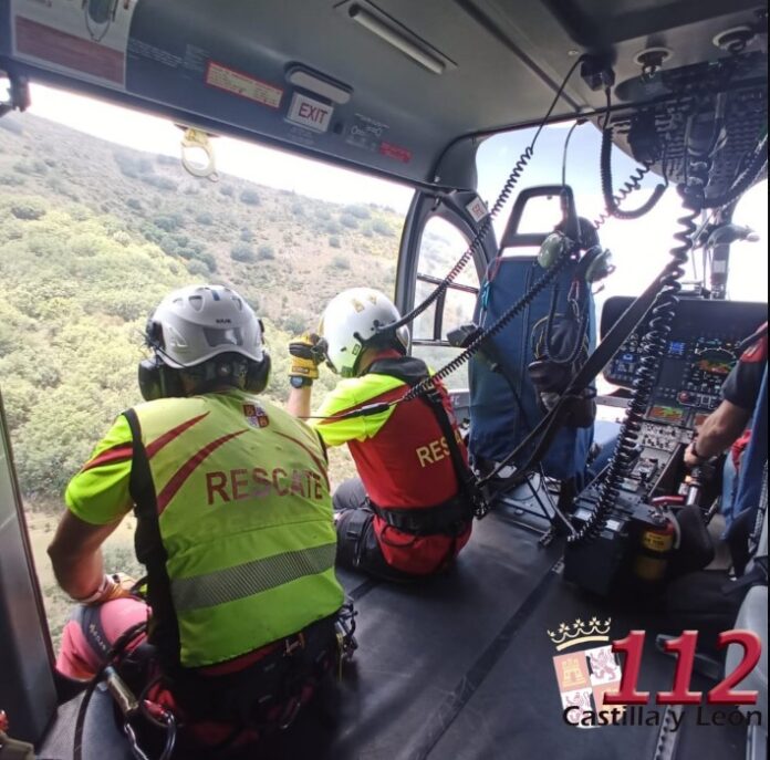 Evacuan en helicóptero a un bombero forestal del incendio de Resoba