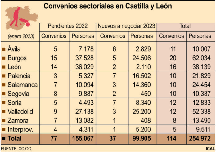 La negociación colectiva se atasca en los salarios: 77 convenios pendientes y 37 nuevos por negociar para 254.972 trabajadores en 2023