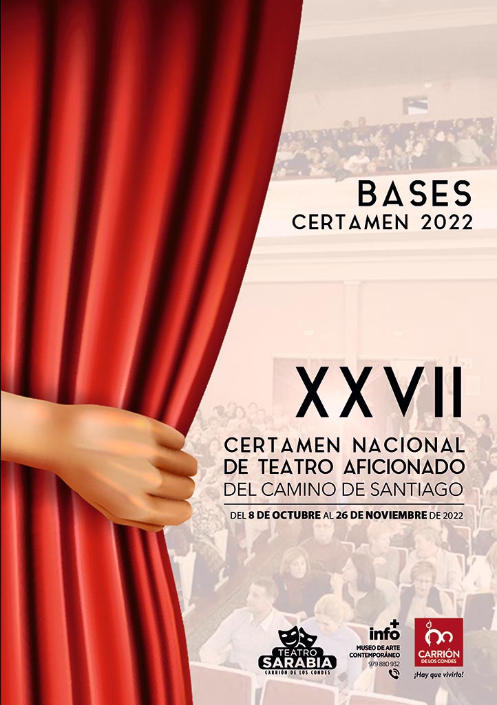 El Ayuntamiento de Carrión de los Condes, a través de la Concejalía de Cultura y Turismo, convoca el XXVII Certamen Nacional de Teatro Aficionado del Camino de Santiago para las fechas del 8 de octubre al 26 de noviembre de 2022