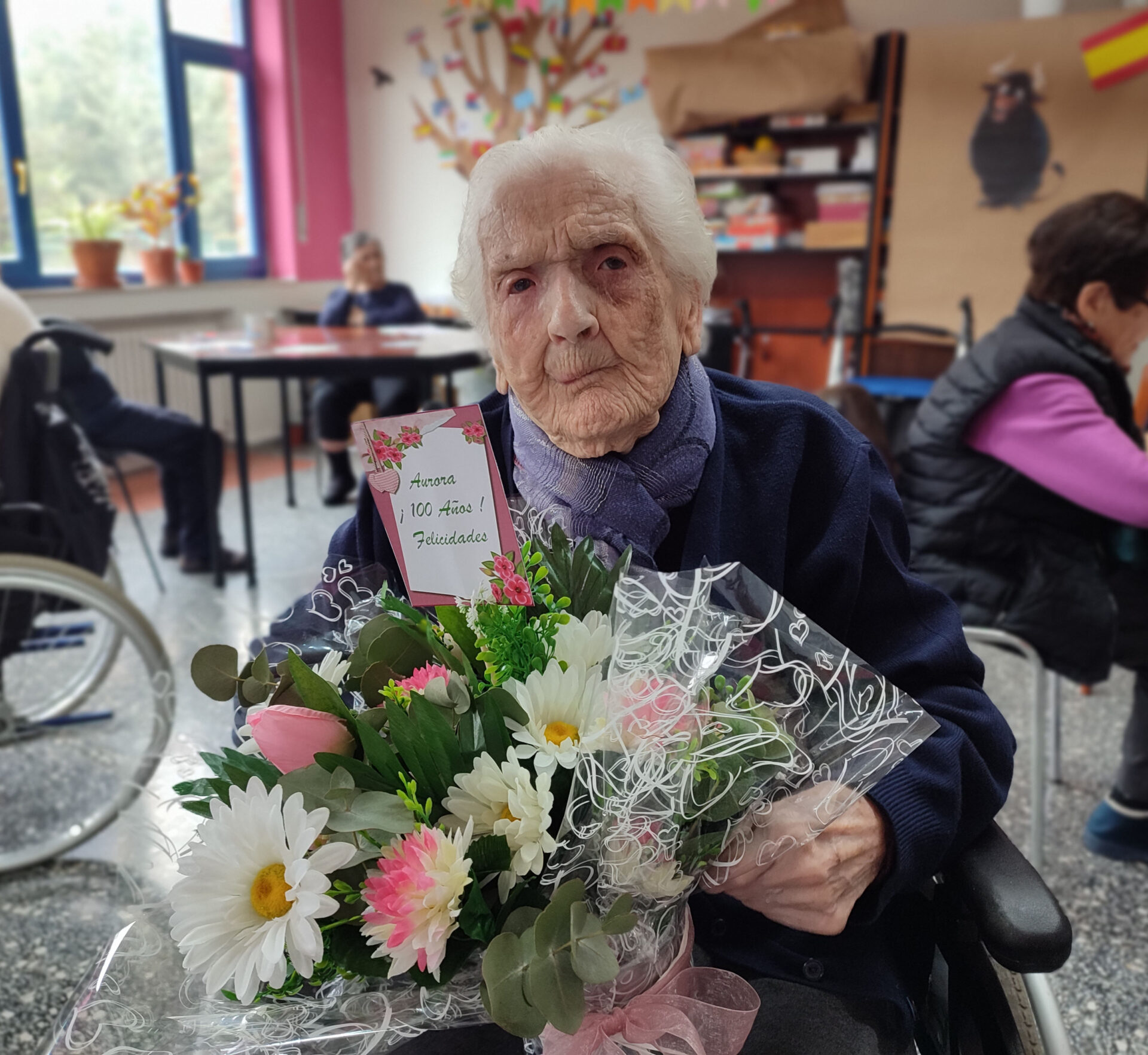 Hace un tiempo llegó a Tercera Actividad, no podía cuidarse sola y era una buena opción para sentirse atendida y acompañada. Hoy, este es su segundo hogar, y por eso, aquí ha celebrado su centenario, arropada por el equipo y el resto de residentes y con el cariño de amigos y familiares.