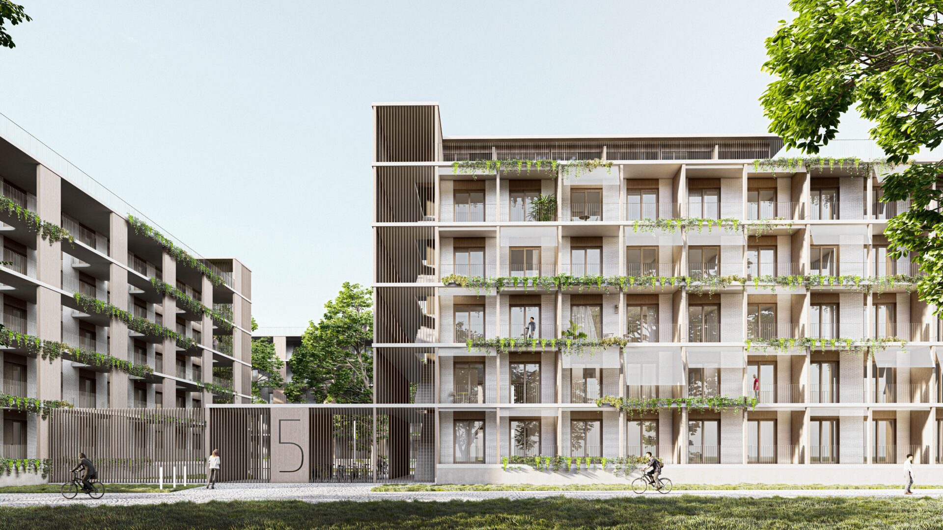 La disposición de estos bloques residenciales genera en el interior de la manzana un espacio verde abierto de carácter privado y exclusivo para toda la comunidad. Se diseña con una finalidad social de descanso, entretenimiento y desconexión de los vecinos. En torno a este corazón verde se disponen galerías abiertas de acceso, a través de las cuales se organizan las viviendas modulares de planta abierta, versátiles e iguales para todos los vecinos con el fin de generar una comunidad igualitaria.