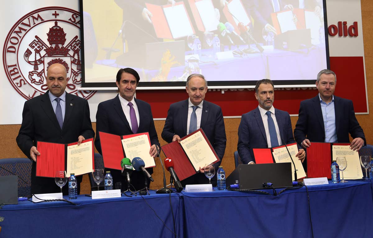 La Junta firmó hoy un protocolo con la Universidad de Valladolid, los colegios oficiales de Ingenieros de Montes e Ingenieros Técnicos Forestales y la Mesa de la Madera para establecer las bases de la colaboración para promocionar e impulsar la formación forestal universitaria en la Comunidad, en el marco de la gestión forestal sostenible. Con una vigencia de cuatro años y con posibilidad de prórroga de hasta otros tantos, persigue incrementar las matriculaciones de nuevos alumnos en las titulaciones universitarias de las formaciones forestales de Castilla y León.