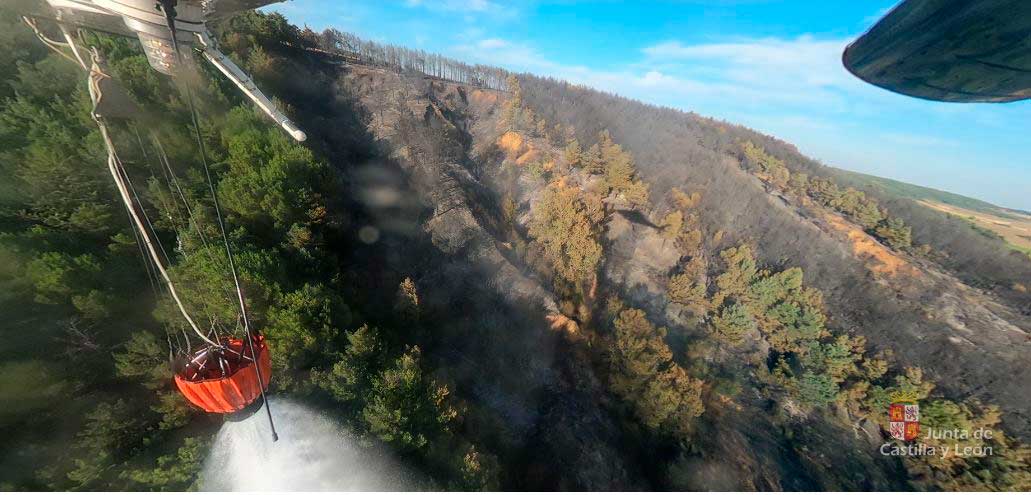 Aún así, el fuego ha obligado a movilizar a un total de 24 medios aéreos y terrestres: el helicóptero de la base palentina de Villaeles, pero también los dos helicópteros de las bases leonesas de Sahechores y Camposagrado y 4 cuadrillas helitransportadas, además de un bulldozer, dos cuadrillas de tierra, tres autobombas, seis agentes, dos técnicos, además de agentes de la Guardia Civil y bomberos de la Diputación de Palencia.