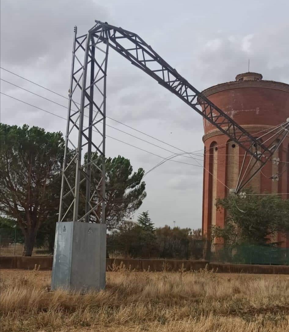 Esta tarde, un pequeño tornado ha tirado una torre de la línea de alta tensión que alimenta de electricidad la depuradora de agua de Venta de Baños y que se ha parado desde ese mismo momento, informa el Consistorio.