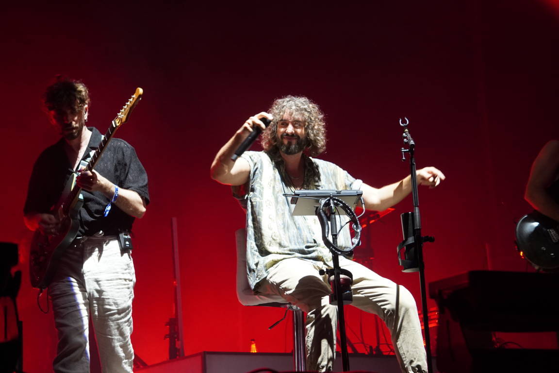 El día comenzó temprano en la emblemática Plaza del Trigo, donde se presentaron Miriam Rodríguez, Merino y Karavana, tres bandas que son la viva representación de la nueva ola de artistas que están marcando el futuro del panorama musical español. Sin embargo, el momento cumbre de la mañana llegó con la aparición sorpresa de Supersubmarina, una banda que ha dejado una huella imborrable en Sonorama. El homenaje que se les rindió fue especialmente emotivo: sobre el escenario, se destapó un banco en su honor que quedará para siempre en la plaza. Este gesto, acompañado del tema “Supersubmarina” sonando de fondo, conmovió profundamente a los asistentes. Este tipo de gestos son los que marcan la diferencia entre un gran festival (hay muchos en España) y el Sonorama, el Sonorama es corazón y sentimiento en estado puro, aún tengo un nudo en la garganta de lo sentí al ver en el escenario al chino y a Jaime voz y guitarra de Supersubmarina, tras ocho largos y duros años desde su desgraciado accidente de tráfico. Para rematar la mañana, Pignoise, la banda sorpresa del día, transportó al público a épocas pasadas con su icónico “Estoy enfermo”, desatando una oleada de nostalgia.