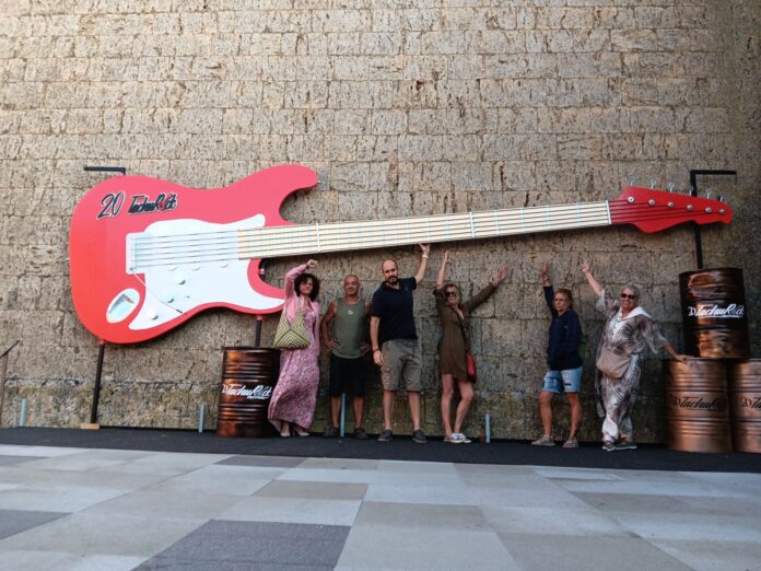 Con este motivo AlmaZen Eventos ha realizado para la organización del festival y el municipio una guitarra eléctrica de 7,5 metros de larga, que ha presidido el escenario y que ha servido de imagen este año en las actuaciones solidarias celebradas en la acogedora Plaza de la Iglesia de Itero de la Vega.