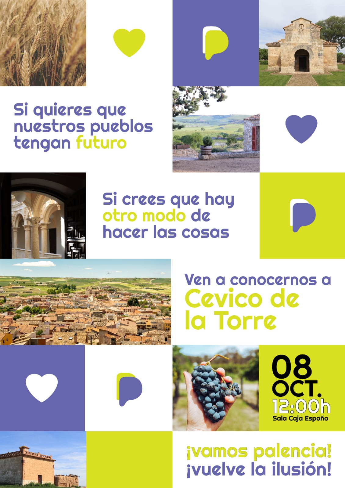 La nueva plataforma ciudadana Vamos Palencia continúa su periplo para seguir dándose a conocer en la provincia de Palencia. En esta ocasión el próximo acto tendrá lugar este sábado, 8 de octubre, a las 12 horas, en Cevico de la Torre, concretamente en la Sala de Caja España.