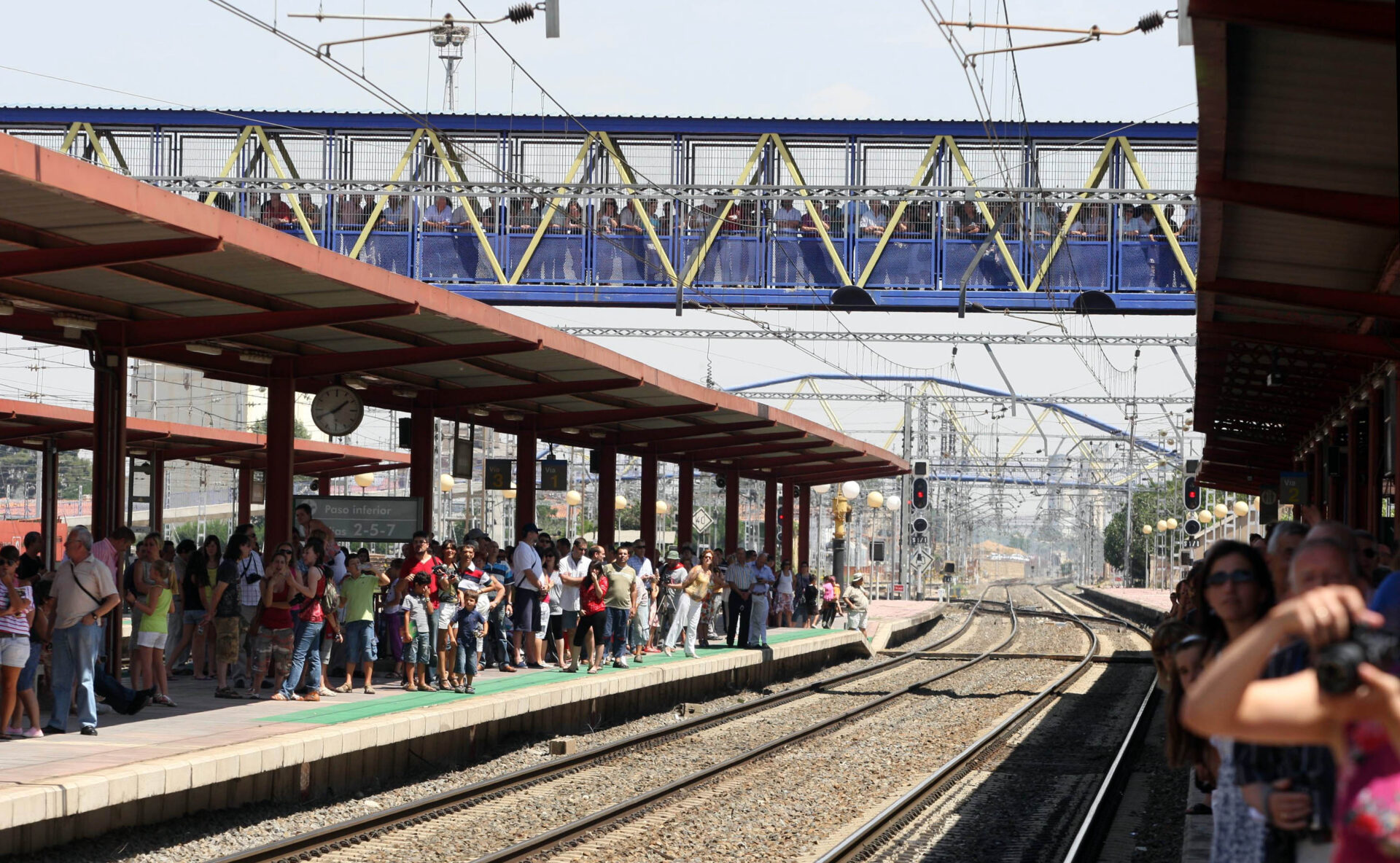 La pasarela de la estación, conocida por su anterior color, verá renovadas las protecciones y recibirá nueva pintura – azul como ahora- en los castilletes de los accesos
