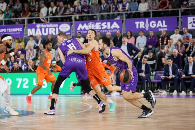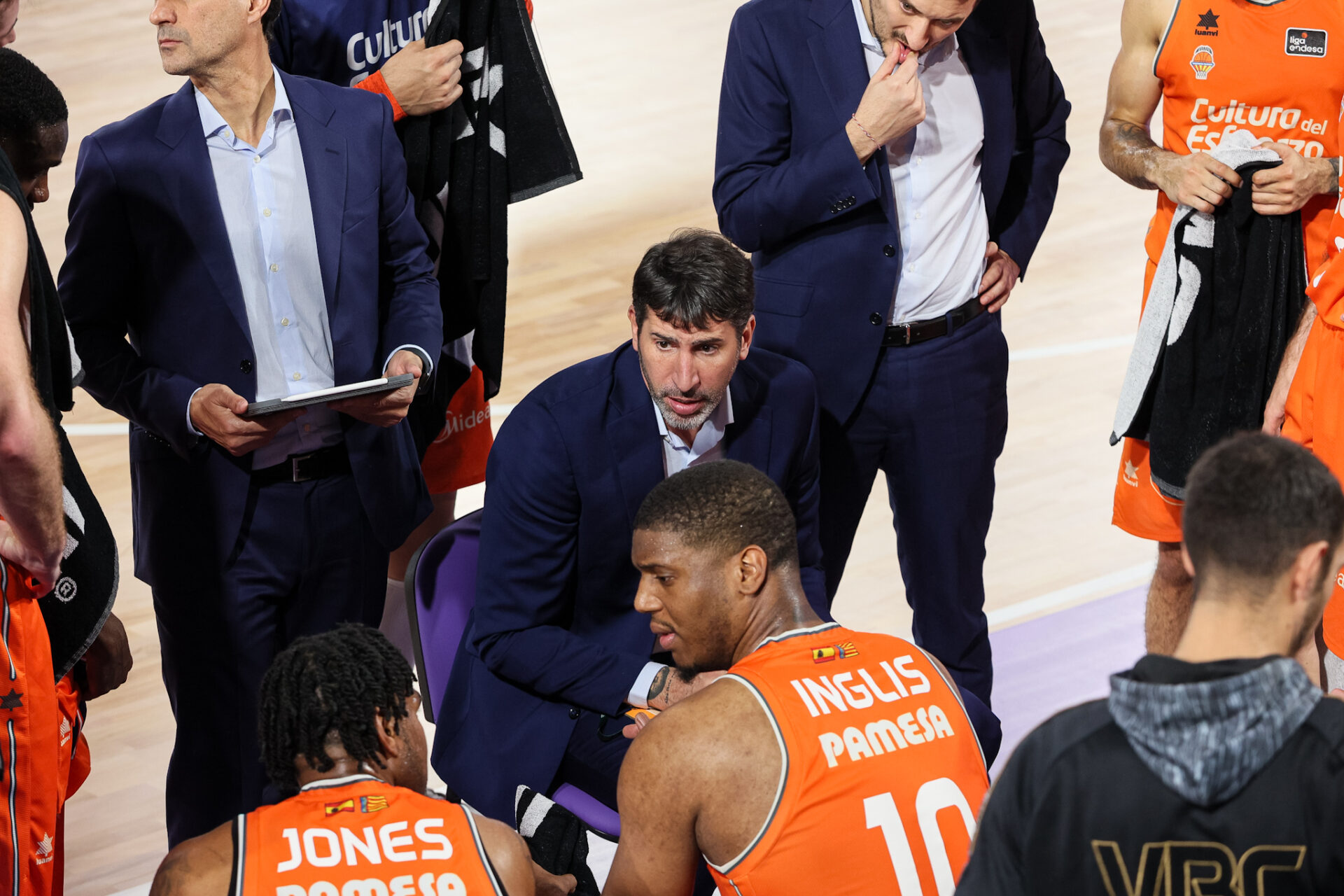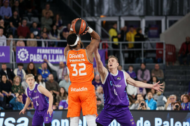 En ese minuto se pusieron los taronjas por delante. Asfixiando a los ataques palentinos que agotaban la posesión. Y con ese arreón, los valencianos se fueron cinco arriba con un triple muy liberado que hizo a Marco Justo reclamar a los suyos al banco.