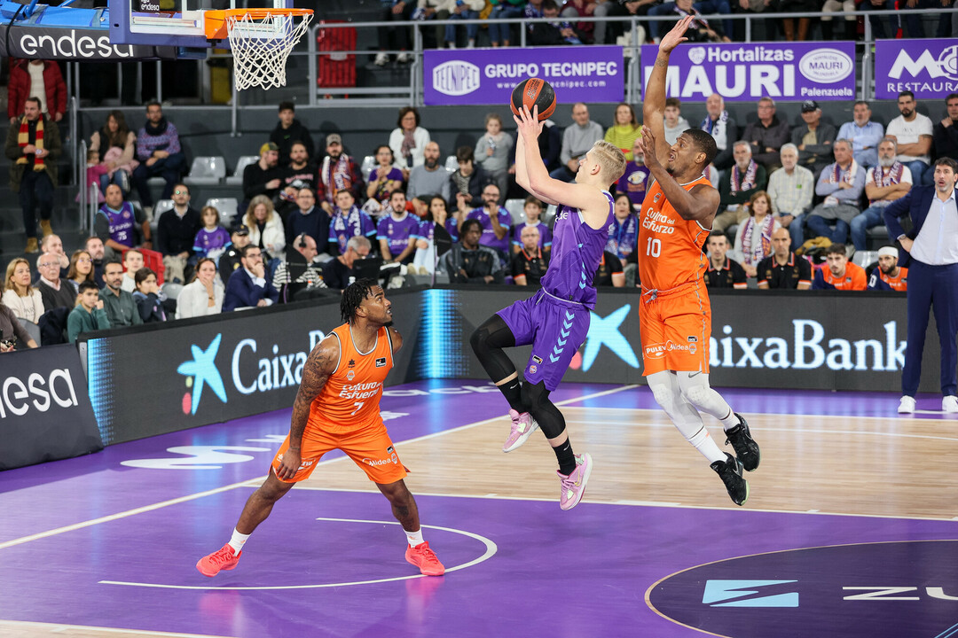 No salió como esperaba Justo, porque el conjunto taronja agrandó su renta tras una posesión errática de los palentinos que acabó con un tiro muy lejano. Tampoco acertó Pasecniks con uno tiros libres posteriores, y el videomarcador se fue a los 45-52.
