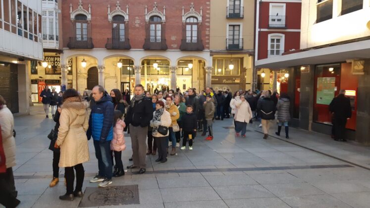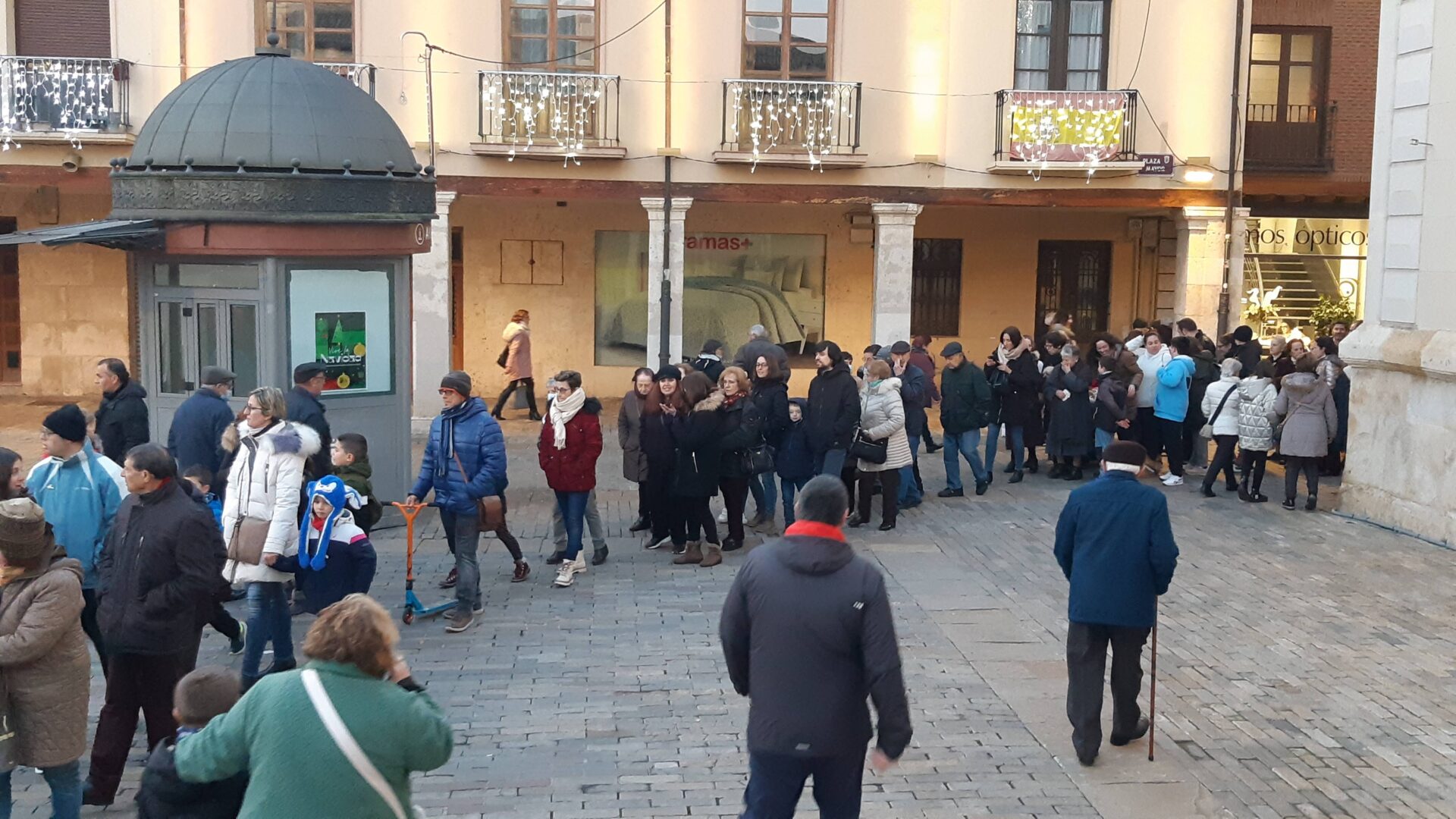 Frente a ellos nacía/moría una cola dirigida por los voluntarios de Protección Civil y que no encontraba su cabecera hasta muy lejos de la Plaza Mayor. “¿Pero dónde acaba esto?”, se sorprendía un padre de familia que había acudido directamente a la Plaza Mayor, mientras salía del ágora palentino en pos de un lugar en la cola. Y se sorprendía en la travesía del Secretario Vázquez. Lejos, muy lejos de donde tendría que acudir. “Llega la cola a Correos”, explicaba a sus compañeros de reparto la concejal Charo García.