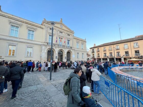 Porque hasta ese punto, a más de 300 metros del lugar donde se entregaban los cachos de roscón, tenían que acudir los palentinos para tomar la vez. “¿Pero no tenéis para comprarlo?”, cuestionaba una mujer a la muchedumbre mientras paseaba por la Calle Mayor.  “¿Tú crees que merece la pena?”, le preguntaba un abuelo a su nieto ante la mirada del niño queriéndole decir ¿Tú qué crees, abuelo?. Porque todo sea dicho, las múltiples manos para repartir las raciones hicieron que la cola fuera bastante rápida y fluida.