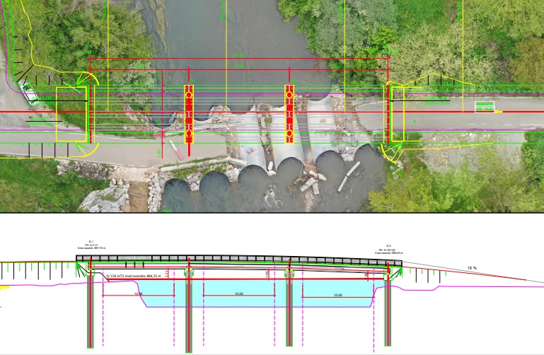 A diferencia del anterior, la nueva configuración deja al río un espacio libre de 172 metros cuadrados por donde fluir, frente a los 77 del anterior. “Se ha simulado la avenida de los 500 años con el nuevo puente obteniéndose un nivel de las aguas arriba el puente de 884,75 m, con lo que se garantiza un resguardo suficiente en todos los vanos del puente, ya que la parte interior del puente en todos ellos estará por encima de la cota 885,75m”, explica el proyecto, redactado por José Alberto Barbero Martín, de la UTE Villaescusa (CIA CIM Ingeniería y ATP Ingeniería).