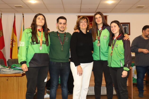 Junto a ellas, Diego Pérez, entrenador ayudante en la Selección de CyL, quien también acudió a la recepción en el Ayuntamiento de Villamuriel. En sus palabras, el agradecimiento al Consistorio de Villamuriel y a la Diputación por el apoyo a este deporte y por el recibimiento ante el hito deportivo. “Seguimos animando al resto de jugadoras a seguir trabajando como hasta ahora, ya que hay veces que el trabajo lleva al éxito…pero otras veces no. Hay que seguir trabajando los valores, el hacer grupo y club todos juntos”.