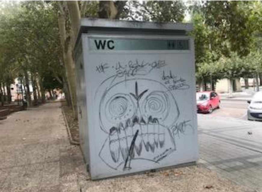 Vox pone de manifiesto el estado en el que se encuentra el WC público junto a San Pablo. Uno de los dos únicos existentes en la ciudad (junto con el del Salón). Apunta VOX que dicha instalación subsiste “con pintadas de vandalismo en su parte exterior”, por lo que “se ruega se adopten las medidas de limpieza necesarias”.