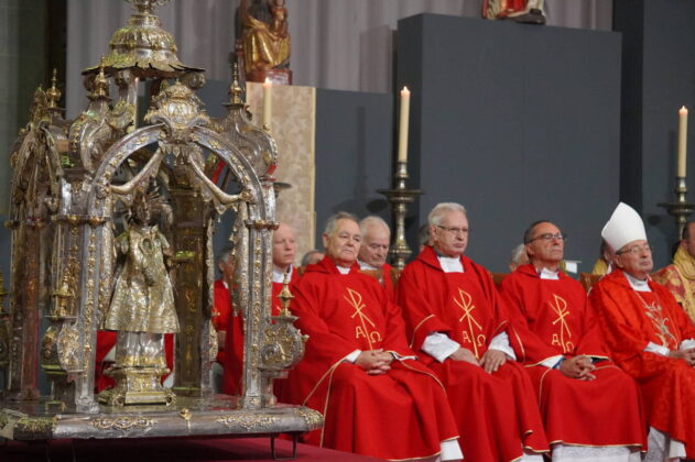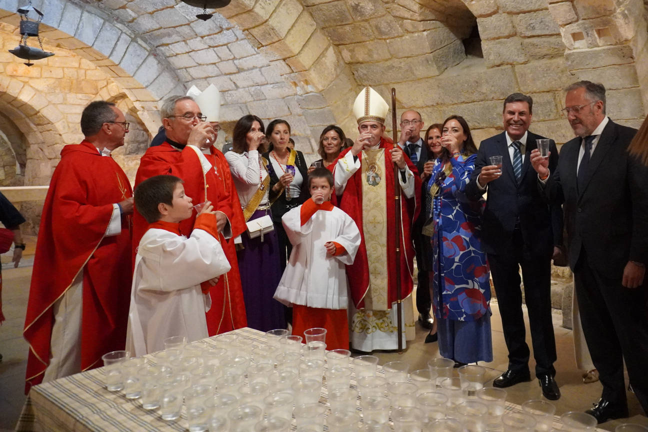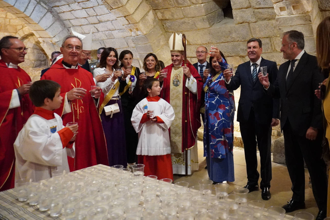 Llegó San Antolín… Y fueron miles los palentinos que quisieron celebrarlo juntos, como manda la tradición, procesionando por las calles del centro, presenciando la misa en la Catedral y bebiendo el agua bendita de la Cripta. Más de 6.000 vasos de agua, un total de 500 litros, se repartieron a los fieles en este día de festejo y honras al patrono, tras la Eucaristía presidida por el obispo de la Diócesis, Don Mikel Garciandía.
