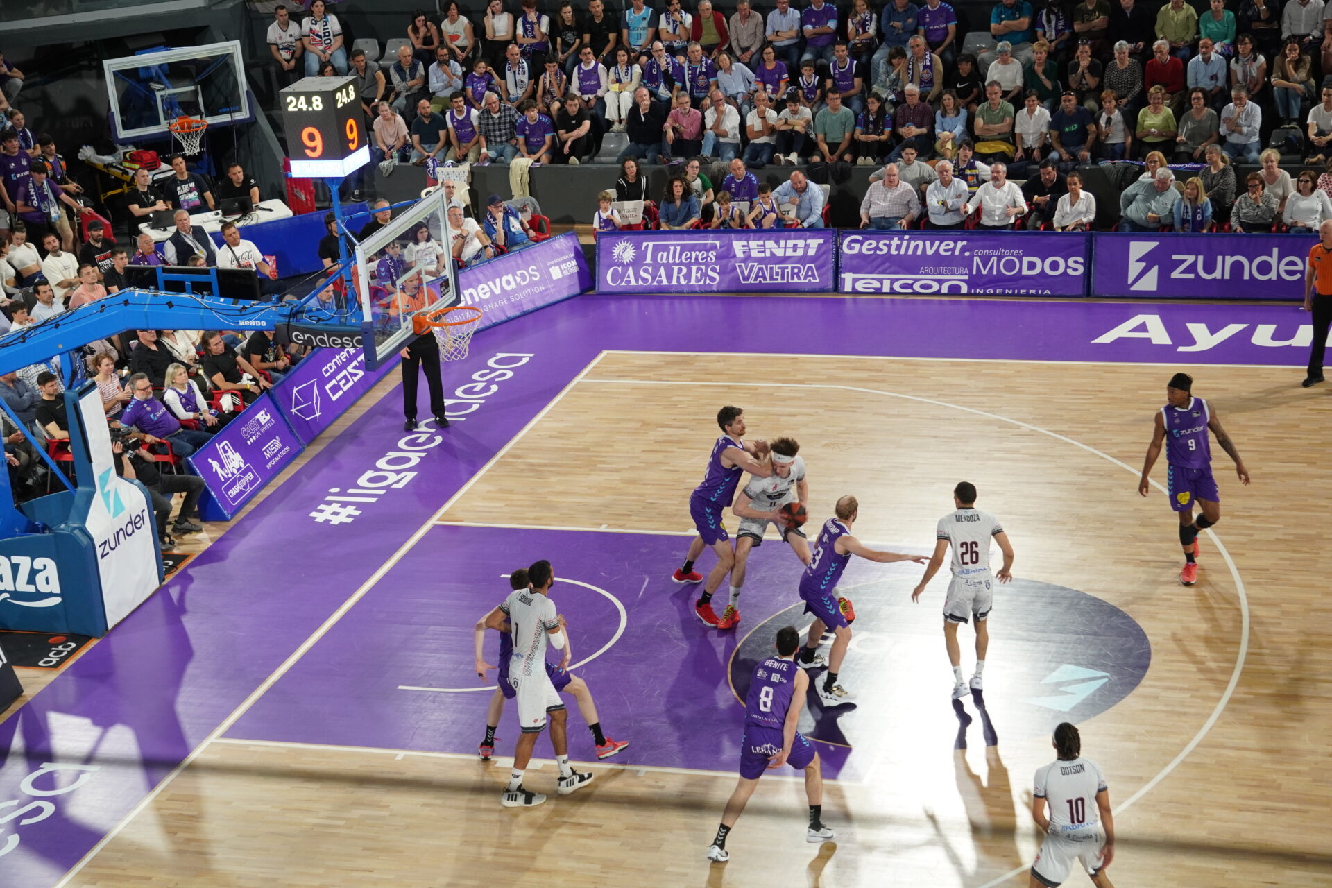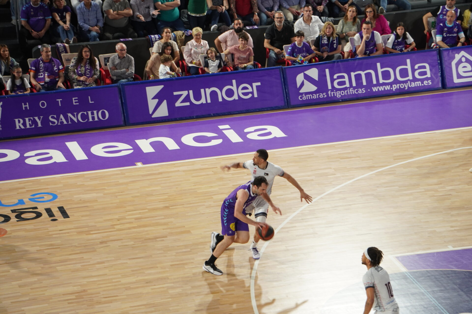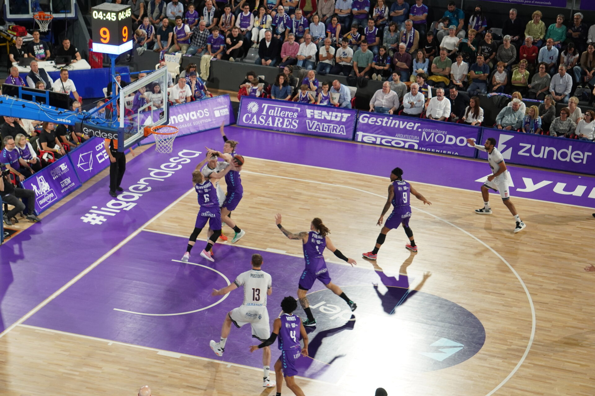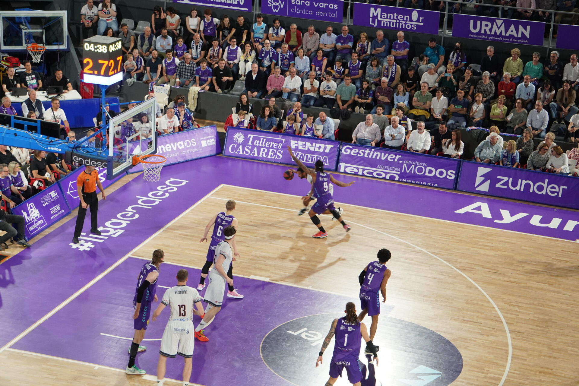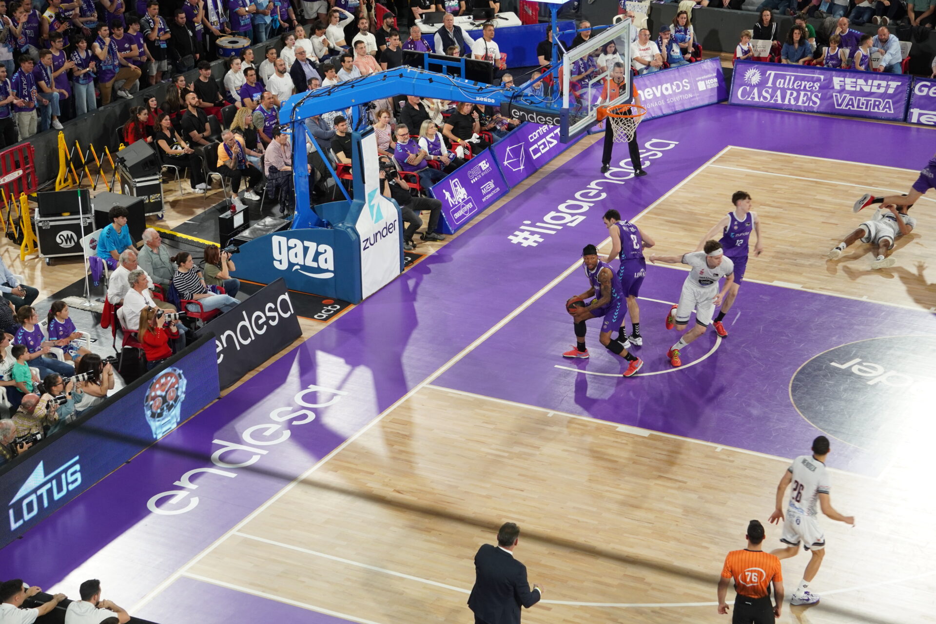 Ubal fue el encargado de abrir el marcador de los morados desde el triple, que fue contestado por Timma, pero sin éxito. Chema demostró el buen estado en el que está, robando para el contraataque y el mate de Kamba y de nuevo Ubal provocó una falta en ataque para poner el 22-19.