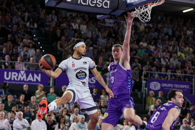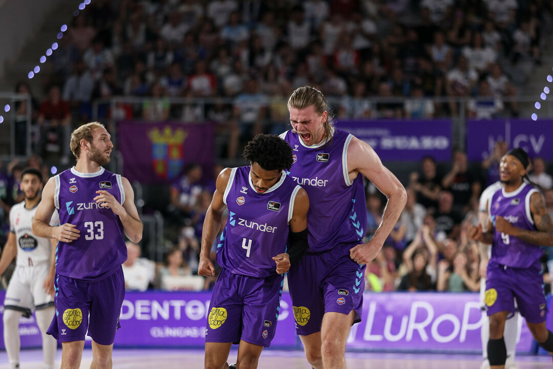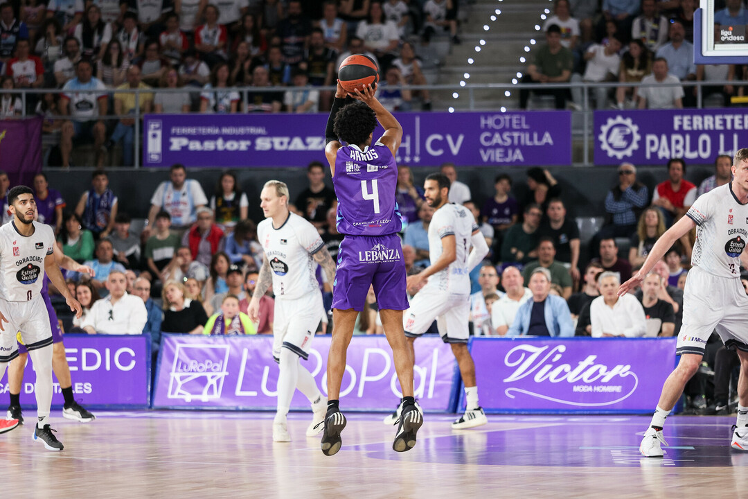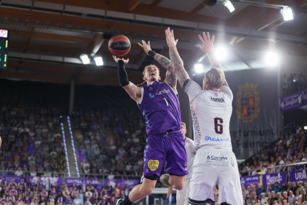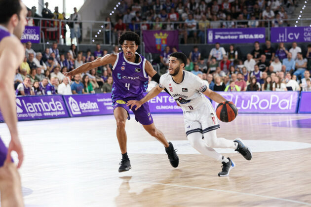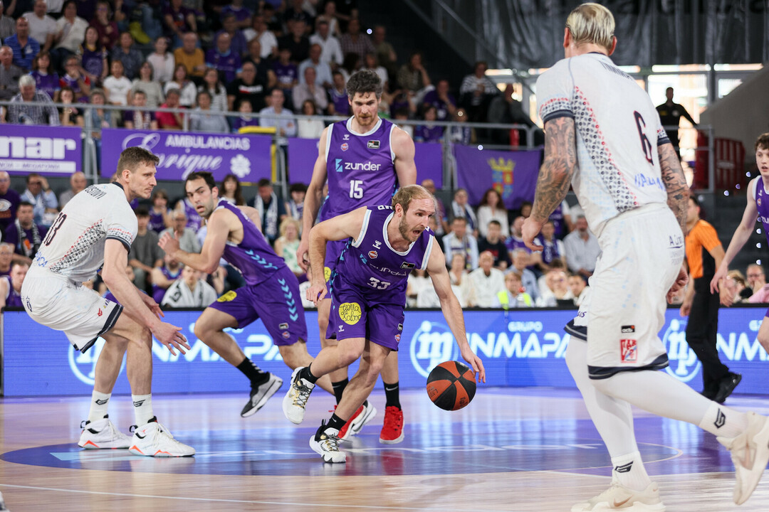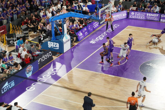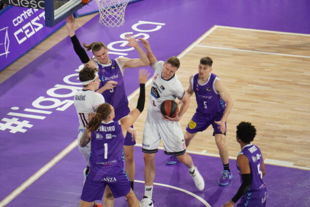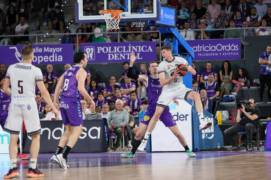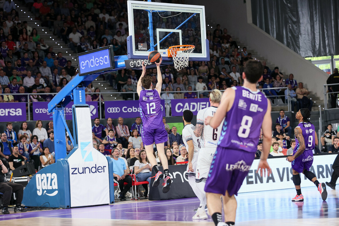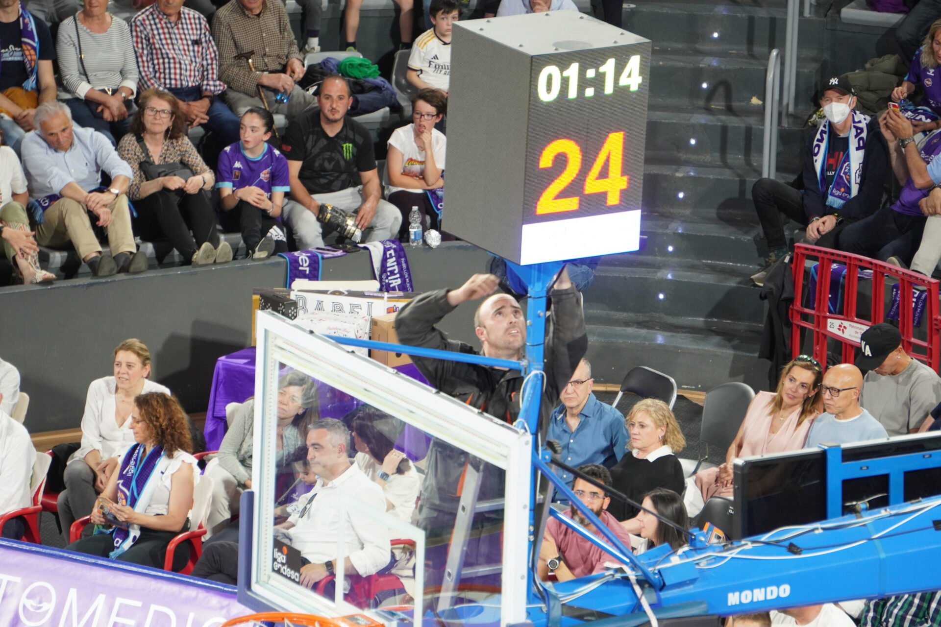 Ubal fue el encargado de abrir el marcador de los morados desde el triple, que fue contestado por Timma, pero sin éxito. Chema demostró el buen estado en el que está, robando para el contraataque y el mate de Kamba y de nuevo Ubal provocó una falta en ataque para poner el 22-19.